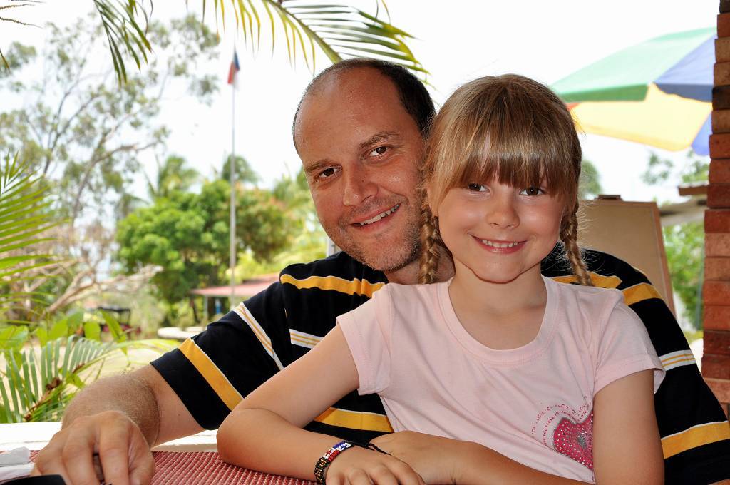 Den Nachmittag verbringen wir wieder am Strand mit Pick-Nicken, Spielen und Baden. Marcus unternimmt mit Jessi eine grosse Schnorcheltour. Sie ist unermüdlich, ständig mit dem Kopf unter Wasser und bemüht sich schön zu schwimmen. Heute sehen wir zwei oder drei grosse Rochen und wieder die Kleinen, die wir schon öfter gesehen haben. Auch der neugierige Kugelfisch sucht immer wieder unsere Nähe.