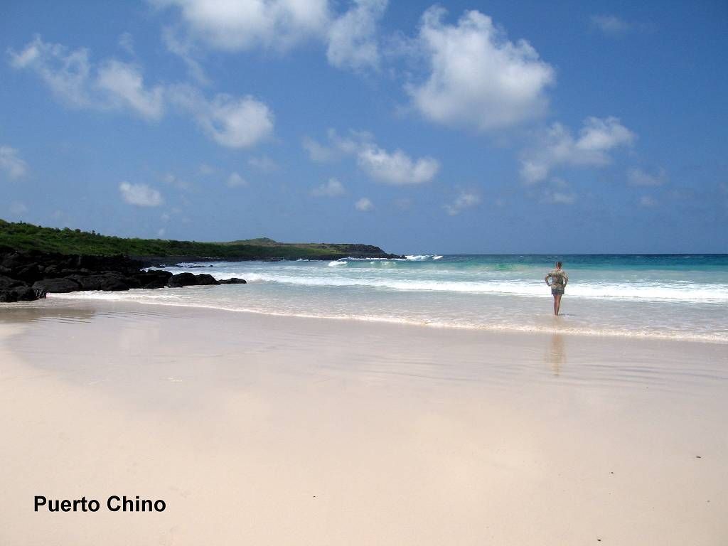 Bevor wir zurück nach Baquerizo Moreno fahren besuchen wir noch den „Puerto Chino“ eine Bucht mit wunderschönem Sandstrand. Traumhaft, und wir sind ganz alleine hier. Kein einziger anderer Touri da! Gegen 14h45 sind wir zurück im Ort und wir sind alle vier sehr zufrieden und glücklich diese schöne Tour gemacht zu haben.