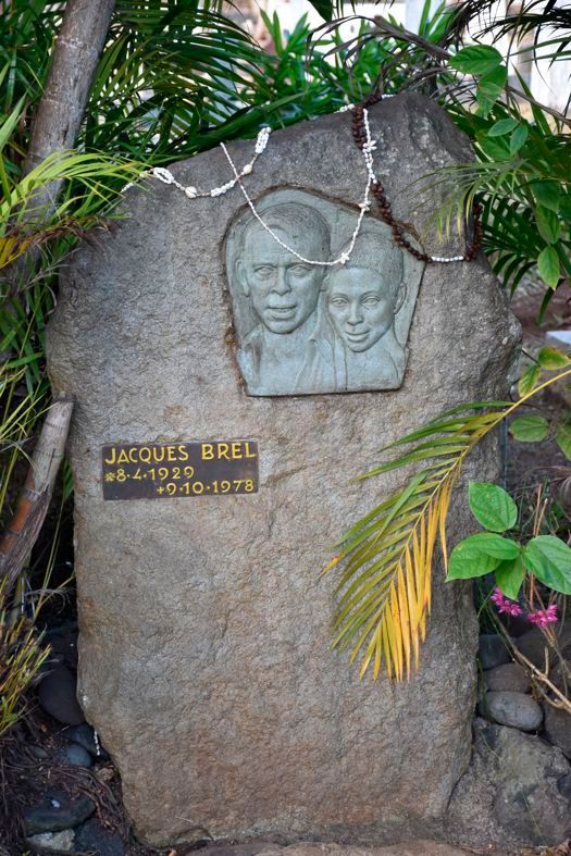 Auf dem gleichen Friedhof, nur wenige Schritte weiter, findet man das Grab des belgischen Chansonsängers Jacques Brel, der von 1975 bis 1978 auf Hiva Oa lebte. Sein zweimotoriges, schon etwas angerostetes Flugzeug ist in Atuona am Gauguin-Museum ausgestellt.