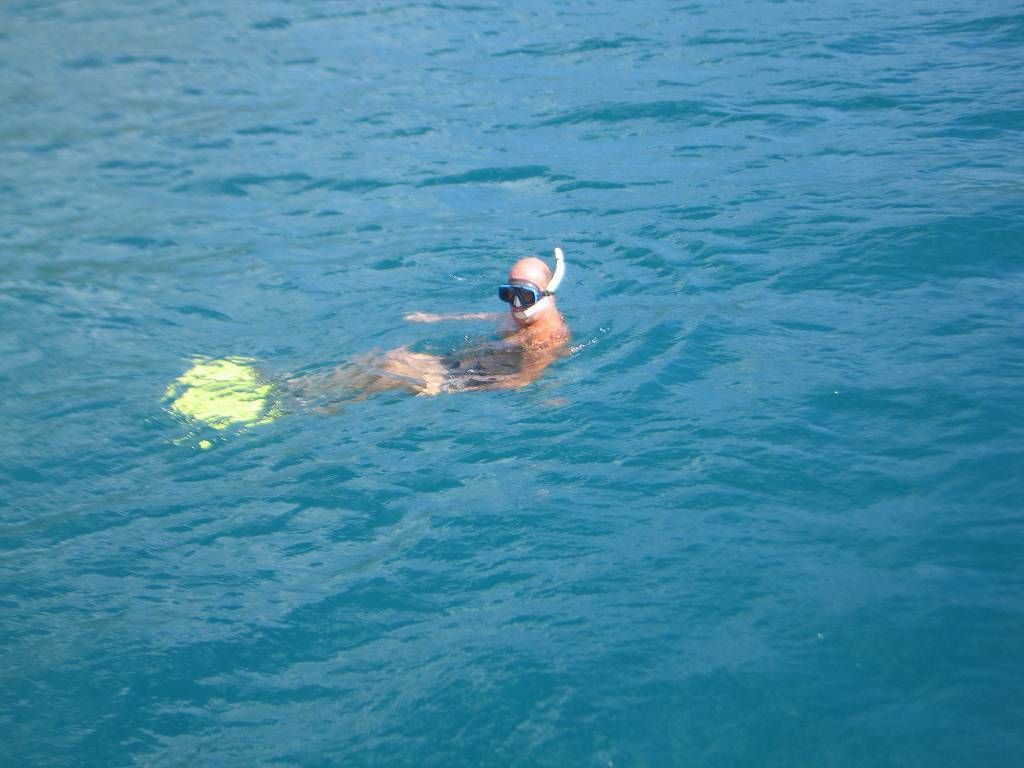 Wir montieren unseren Motor ans Dinghy und um ein Haar versenken wir den schweren Motor (ca. 35 kg?), ins 6m tiefe Meer. Der Gurt, an dem er aufgehängt war und an dem ich ihn vom Schiff aus über eine Rolle zum Dinghy runter lassen muss, reisst und der Motor fällt ins Dinghy. Puhhh, das war knapp! Paul bastelt sofort einen neuen Gurt, diesmal aus einem starken Seil.