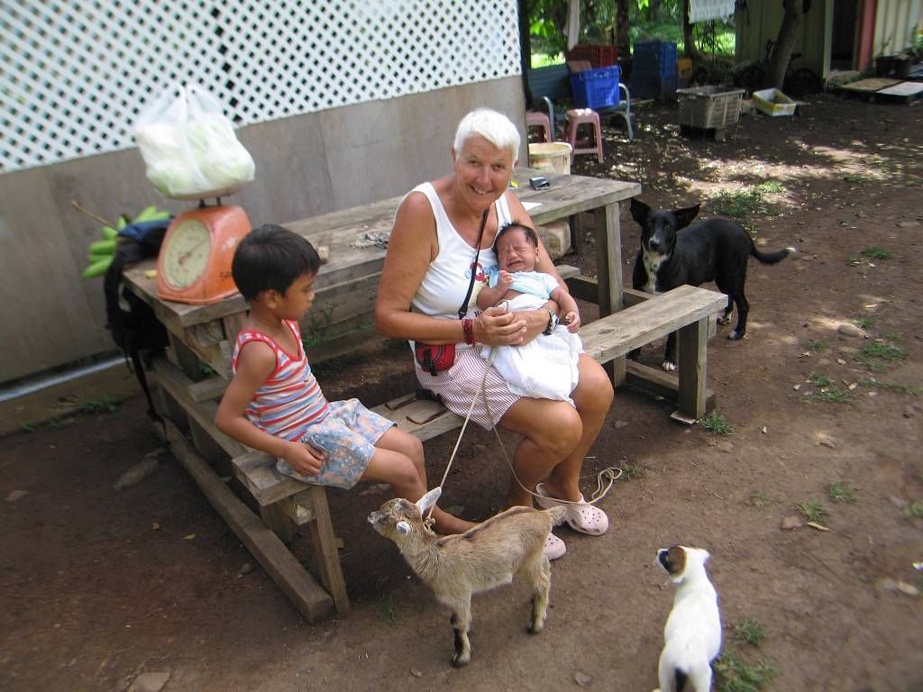 In der Gärtnerei halte ich das 2 Monate alte Bübchen, das verzweifelt nach seiner Milch schreit, während die Gärtnersfrau uns das Gemüse in der Pflanzung holt.
