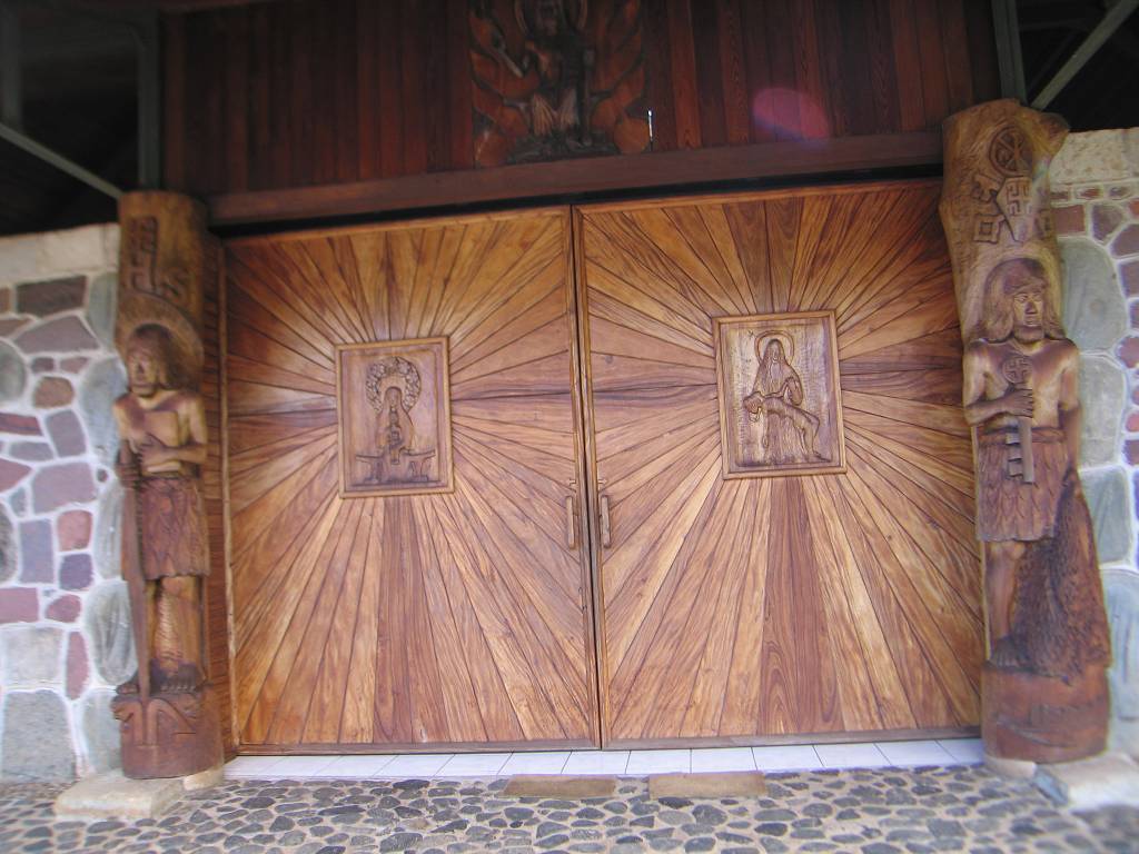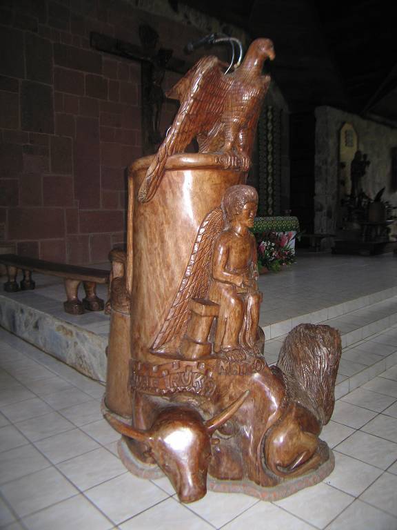 Nationalfeiertag! Es ist ein strahlend schöner Tag. Um 8h30 werden schon Blumengestecke beim Denkmal für die gefallenen Soldaten niedergelegt. So gegen 9h sind wir an Land und schon bald geht das „defilé“ los. Wir staunen nur so, wie viele Gruppen es auf dieser kleinen Insel gibt. Eine grosse Jugendgruppe ist extra aus Tahiti angereist. Es hat viele Pferde und interessante Leute. Danach gibt es eine Ansprache vom Bürgermeister, am Strand gibt es ein Pferderennen (ohne Sattel und Steigbügel), das schönste Pferd und der schönste Reiter, der schönste Wagen und die schönste Gruppe werden gekürt. Es gibt zu trinken und Kuchen zu essen. Mit den ODIN's und Anna-X essen wir später bei der Halle zu Mittag. Die Jugendgruppe aus Tahiti singt zwei Lieder und tanzt zwei moderne Tänze und danach wird die schönste Mamma gewählt. Die anderen fahren zu ihren Schiffen und Paul und ich laufen zu der Kathedrale, die im Jahre 1975 aus den Steinen von den sechs bewohnten Marquesas-Inseln gebaut wurde. Sie ist sehr schön und auch die Schnitzereien im Inneren. Um 14h20 sind wir wieder auf der MABUHAY, für eine kleine Verschnaufpause. Unterdessen findet das Pirogenrennen statt. Ein Wettrudern mit den Auslegerbooten rund um unsere Segelschiffe.