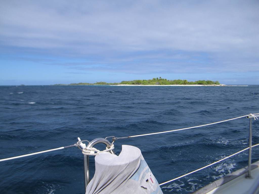 Der Wind (20 – 25 Knoten) ist kalt und wir sind beide richtig froh als um 06h10 die Sonne endlich aufgeht und uns wärmt. Um 08h sehen wir am Horizont erstmals das Atoll Kauehi. Ein ganz schwacher, hellgrüner Streifen. Wir haben noch 12 sm (ca. 20km) bis zum Pass (Einfahrt). Die Sonne scheint, es ist richtiges Südseewetter. Um 08h30 erfahren wir am Funk von anderen Seglern, dass die ODIN ein Motorenproblem hatte und direkt weiter nach Tahiti gesegelt sei. Kunststück können wir sie auf UKW, Kanal 16 nicht mehr erreichen. Von den Tuamotus bis nach Tahiti sind es nochmals ca. 280 sm, also viel zu weit für den UKW-Funk. Die ODIN hat kein anderes Funkgerät.