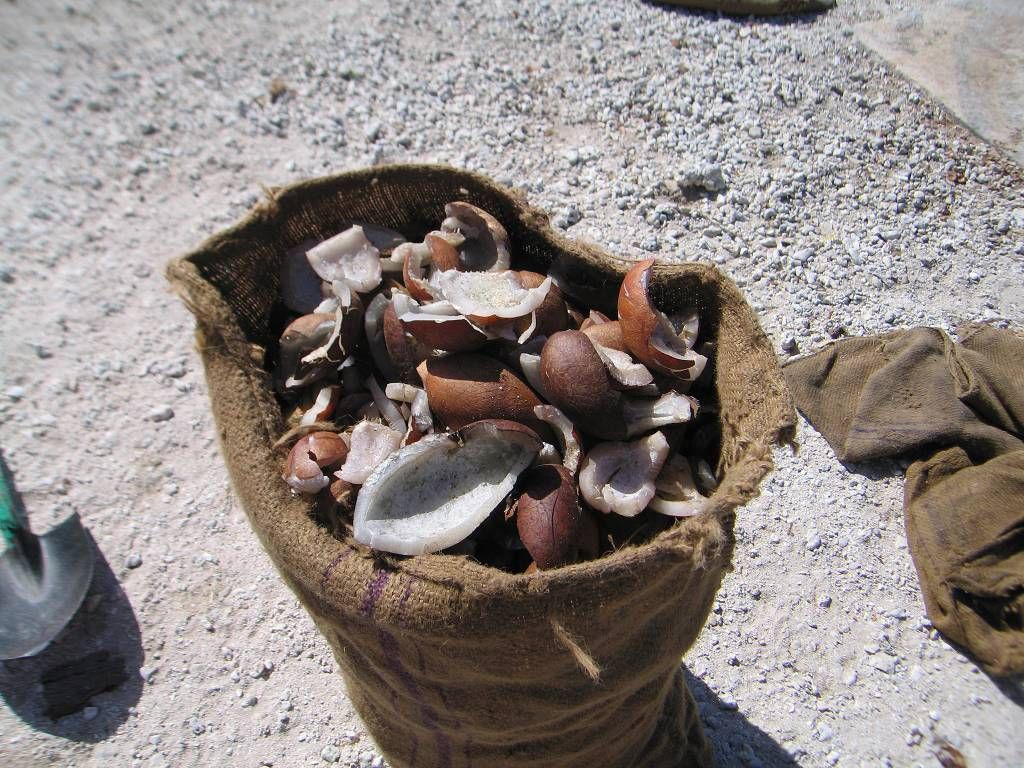 Kopraproduktion; die Tuamotus produzieren in Klein- und Familienbetrieben jährlich etwa 8.000 Tonnen, davon ungefähr zwei Drittel für den Export, der Rest wird im Land verarbeitet