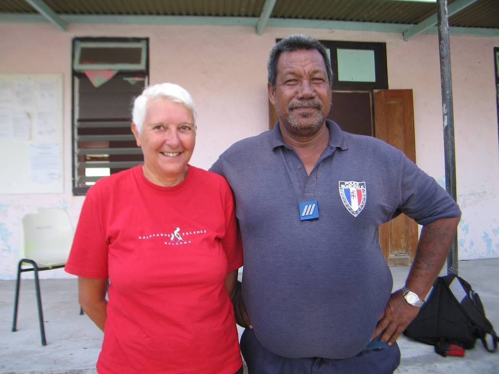 30 Minuten später fülle ich vorne beim Lenkrad das Öl ein und Paul findet hinten am Heck bei der Hydraulikpumpe ein Loch im Schlauch, wo das Öl raustropft. Gegen 13h30 gehen wir zum Haus von Edouard und stören ihn beim Mittagsschläfchen. Den defekten Schlauch haben wir als Muster dabei. Edouard marschiert sofort mit uns zum Gemeindemechaniker Antoine. Dieser hat aber keine solchen Hochdruckschläuche, oder nur mit viel zu grossen Anschlüssen. Er lässt uns einfach stehen und fährt mit dem Boot raus auf eine Insel, Kopra holen! Jetzt begleitet uns Edouard ins Gemeindehaus, zum Polizeischef. Er heisst Pomare (Vorname) Taufa (Nachname). Er ist gleichzeitig Polizist und der Chef in einer Person und sehr, sehr hilfsbereit. Ohne, dass wir ihn darum bitten müssen, ruft er in Tahiti bei einer Firma an, die die Vertretung unserer Hydraulikpumpe hat. Die Telefonnummer der Firma Nautic Sport, hatten wir von unserem Schwesterschiff, der „Sanuk“, per Funk erhalten. Pomare macht eine Kopie des Plans der Hydraulikpumpe, den wir mitgenommen haben und faxt ihn, sowie alle Angaben über Modell, Seriennummer, Referenznummer und was weiss ich noch alles, nach Tahiti. Auch ich muss ans Telefon und mit dem Herrn von Nautic Sport reden. Ich kann zwar schon Französisch, aber kein Technisch!!!Mann, ist das kompliziert, der fragt mich tausend Sachen, von denen ich Null Ahnung habe! Nach unendlich langem hin-und hertelefonieren und faxen erhalten wir eine Rechnung zugefaxt. (315 US$ für zwei ca. 1m lange Schläuche mit 4 Anschlüssen!). Diese Rechnung müssen wir am Montagmorgen um 7h30 auf der Post einzahlen. Mit der Quittung dann wieder zu Pomare, der faxt sie an Nautic Sport und schon können unsere heisserwarteten Schläuche ins Flugzeug verladen und zu unserem Atoll Kauehi geflogen werden. Puhhhh, wir sind einen grossen Schritt weiter gekommen! Nach zwei Stunden verlassen wir den Polizisten, der hinter einem Bretterverschlag sein Büro hat (mit Computer (aber OHNE Internetverbindung), Telefon-und Faxgerät und Kopierer). Merci vielmals Pomare für diesen tollen Einsatz! Die Polizei Dein Freund und Helfer! Und Edouard ist nicht von unserer Seite gewichen. Er geleitet uns sogar wieder zurück zu unserem Dinghy und hilft, es ins Wasser zu schieben. Jetzt sind wir unheimlich gespannt, ob das mit dem Flugzeug am Montag wirklich klappt. Hoffentlich!