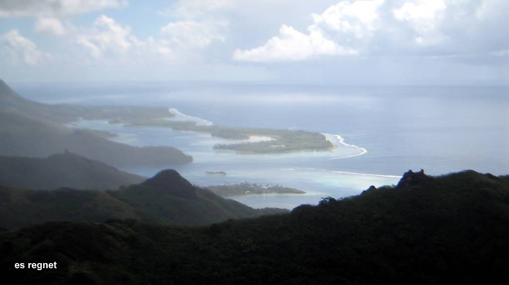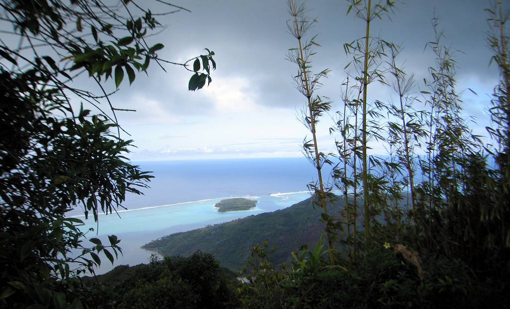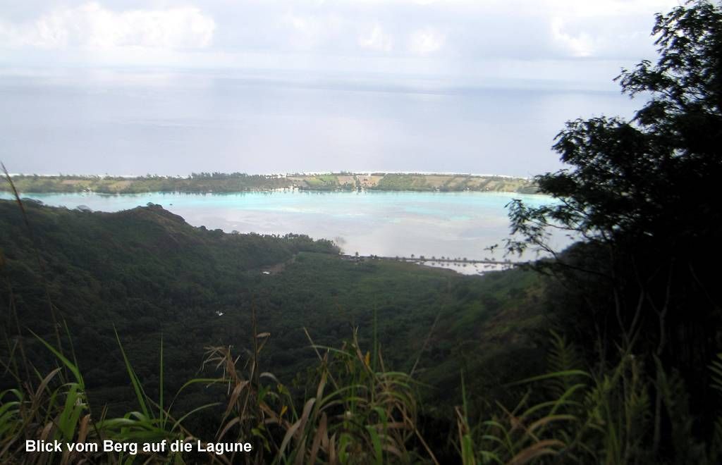 Die „Molimentum“ verlässt um 8h30 den Ankerplatz. Somit ist die Lagune jetzt fest in Schweizerhand! Punkt 9h holen wir mit unserem Dinghy Doris und Andy ab und fahren zum Dörfchen Tefarerii. Hier lassen wir unser Dinghy liegen und laufen auf den 485m hohen Mont Puhueri. Wir sind kaum richtig losmarschiert, fängt es an zu regnen. Und diesmal hört es nicht schon nach etwa 5 Minuten auf, nein, es regnet fast eine ganze Stunde lang und wir sind sofort bis auf die Haut durchnässt. Aber wir geben nicht auf und laufen einfach unbeirrt auf dem Waldweg durch den Kiefernwald weiter. Das letzte Stück ist enorm steil, und eigentlich nur noch ein ganz schmaler Pfad. Wir kommen an wunderschönen kleinen violetten Orchideen vorbei und freuen uns gewaltig, um 11h endlich zuoberst auf dem Gipfel zu stehen. Die Aussicht auf die Riffe und Lagunen ist herrlich. Sie wäre noch viel schöner, wenn das Wetter besser wäre. Den Rückweg legen wir mehr stolpernd und rutschend zurück, als laufend. Wir sehen alle vier aus wie Erdschweine! Wieder am Meer,waschen wir uns erst einmal gründlich die Beine, Füsse und Schuhe. Um 13h15 sind wir alle wieder wohlbehalten, aber hungrig auf unseren Schiffen. Nach einer Lesepause, so gegen 15h, kommen 3 Männer vom Französischen Zoll per Schlauchboot zu uns an Bord. Sie sind sehr freundlich, kontrollieren aber, was wir bei unserer Einklarierung in Hiva Oa, auf den Marquesas, an Wein und Bier zum deklarieren angegeben haben. Wir haben das Gefühl, sie machen das zum ersten Mal!!! Einer weiss nicht wie die Bucht heisst, wo wir gerade sind und wie man Huahine schreibt!!! Sie sagen uns, wir dürften 2 Jahre in Französisch Polynesien bleiben, wir wissen aber ganz genau, dass dies für Schweizer nicht gilt. Aber egal, sie sind nett, lehnen ein Bier aus Panama ab und gehen nach ca. 30 Minuten weiter zur „Andori“.
