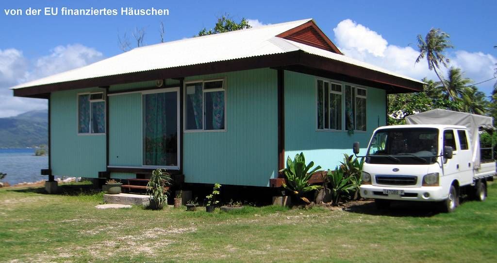 Am Nachmittag machen wir einen kurzen Dinghyausflug zum Motu (Riffinsel) und dort spazieren wir ein wenig herum. Auf diesem Motu hat es einige sehr schöne Ferienhäuser aber auch ein paar Häuser, die ständig bewohnt sind. Es hat Kokos- und Noniplantagen.