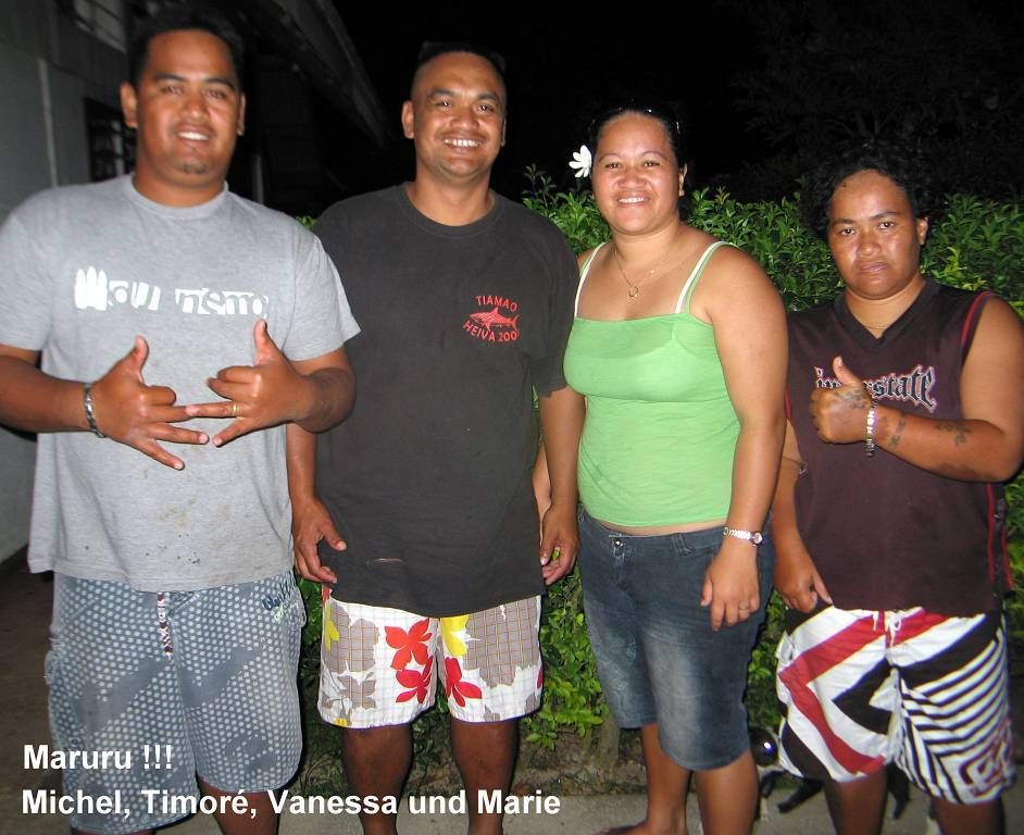 Zum Abschluss schenken uns Vanessa und Michel ein T-Shirt für Paul, wo Bora Bora draufsteht, und für mich einen Pareo. Wir sind total überwältigt!!! Am meisten erstaunt mich, dass dies so JUNGE Leute sind, die uns so gastfreundlich empfangen haben. Unvergesslich! Und wir haben ein neues Wort auf Polynesisch gelernt: MARURU (Danke) !!!