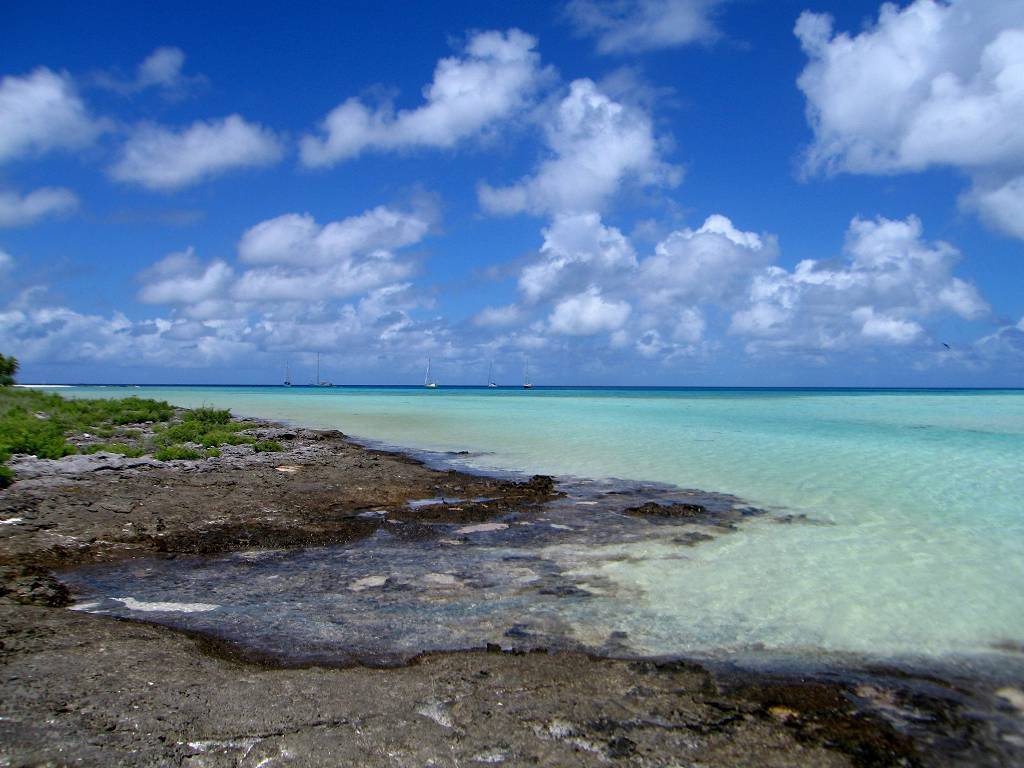 Um 11h15 schmeissen wir den Anker auf 12m Tiefe ins kitschige türkisgrüne Wasser im Suwarrow-Atoll, hinter der Insel Anchorage. Bei wunderschöner Sonne und in wunderschöner Lagune! Als Erstes sticht uns eine riesige Schweizerflagge ins Auge. Es sind mit uns jetzt 5 Segelschiffe da. Ein Schwede, ein Deutscher, ein Australier und mit uns jetzt zwei Schweizer, die Schweizer kennen wir aber nicht.