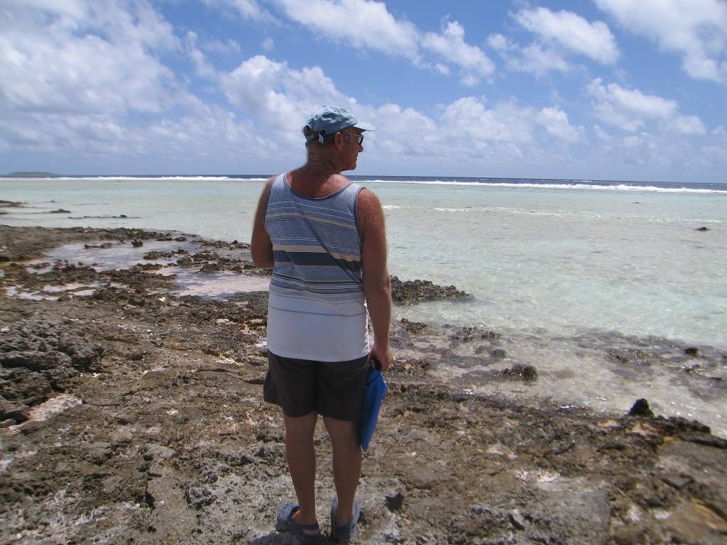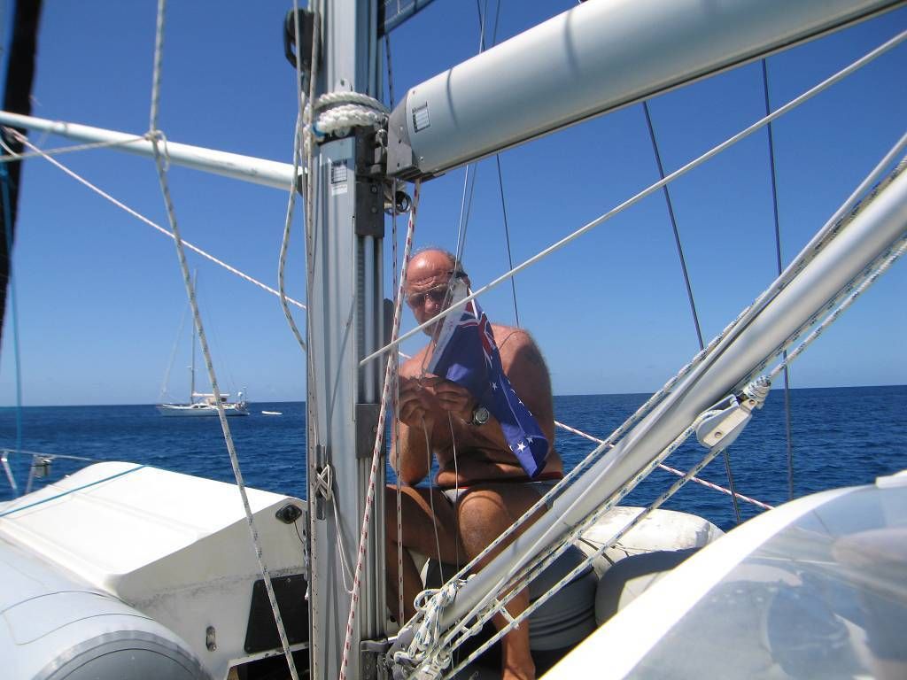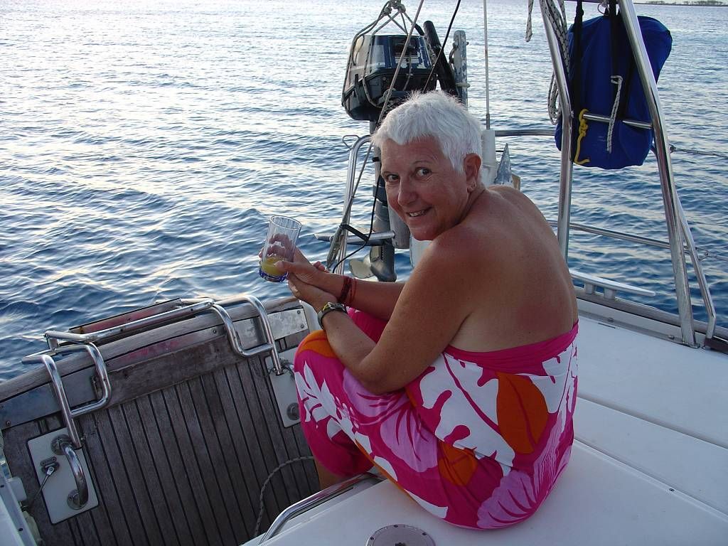 Wir schlafen sehr lange und schneiden uns dann wieder einmal gegenseitig die Haare. Weil mir Paul die Haare mehr ausreisst als schneidet, wird mitten während meines Haarschnittes eine neue Klinge in die neuseeländische (Schafscher-) Haarschneidemaschine (Marke Wahl) montiert. Und nachdem Paul auch geschoren ist, springen wir direkt ins blaue Wasser um die lästigen Härchen loszuwerden. Das ist praktisch! Die „gelben“ Haie patroullieren immer um uns herum. Kaum sind wir abgetrocknet, kommt ein Hilferuf von den Schweizern Gisela und Peter von der „TeApiti of Chriska“. Sie möchten gerne nach Tonga lossegeln, aber der Anker ist irgendwo verklemmt und kann nicht gehoben werden. Paul gräbt seine Taucherausrüstung hervor und knappe 20 Minuten später sind wir mit dem Dinghy bei der „TeApiti of Chriska“. Paul taucht ab, etwa 20m tief, und sieht sofort das Problem. Die Kette hat sich unter einem Korallenblock verhakt. Paul befreit die Kette, legt sie ÜBER den Korallenblock und taucht wieder auf. Nun kann Peter seinen Anker ohne Probleme heben. Gisela und Peter schenken uns für Paul's Hilfe eine gekühlte Flasche Champagner (echten, aus Reims).