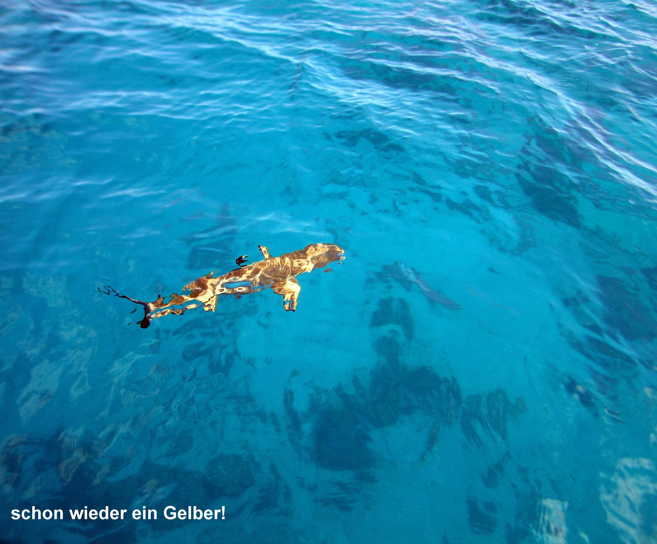 Am Nachmittag schnorcheln wir ein wenig herum und begegnen unter anderem auch den „gelben“ Haien, die sich überhaupt nicht um uns kümmern.