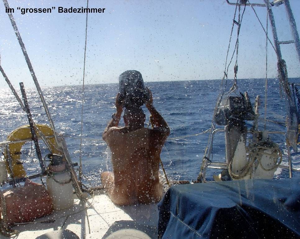 Heute ist es total bewölkt und ein mieser Squall erwischt uns gegen 10h. Er bringt vorübergehend bis 30 Knoten Wind und wir fahren kurze Zeit 8 Knoten schnell. Aber kaum ist der heftige Regenschauer vorbei, fallen wir wieder ins Schneckentempo zurück. Jetzt sind wir sogar noch langsamer als vor dem Squall. Der Regen hat uns aber nichts ausgemacht. Wir haben ja die Steuerbordwand und die Rückwand der Kuchenbude montiert und bleiben so im Cockpit gemütlich warm und trocken, während es draussen strätzt. Am Nachmittag kommt die Sonne hervor und wir segeln 1.5Knoten (2.8km/h) „schnell“! Paul stellt trocken fest, dass sogar die Seeschnecken schneller sind als die MABUHAY. Wir verbringen die Zeit lesend und dösend. Um 17h30 haben wir die Hälfte der Strecke hinter uns gebracht. Dabei hatten wir damit gerechnet, morgen in Suwarrow anzukommen! Wir dümpeln weiter mit 1,5 Knoten Fahrt dahin. Es ist unheimlich schwer, nicht einfach den Motor zu starten....