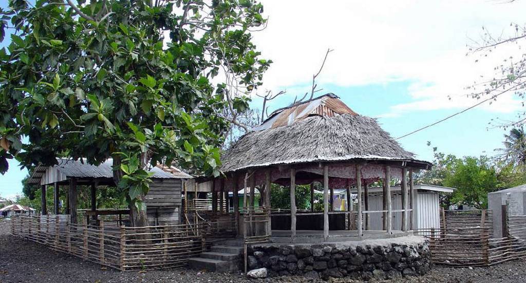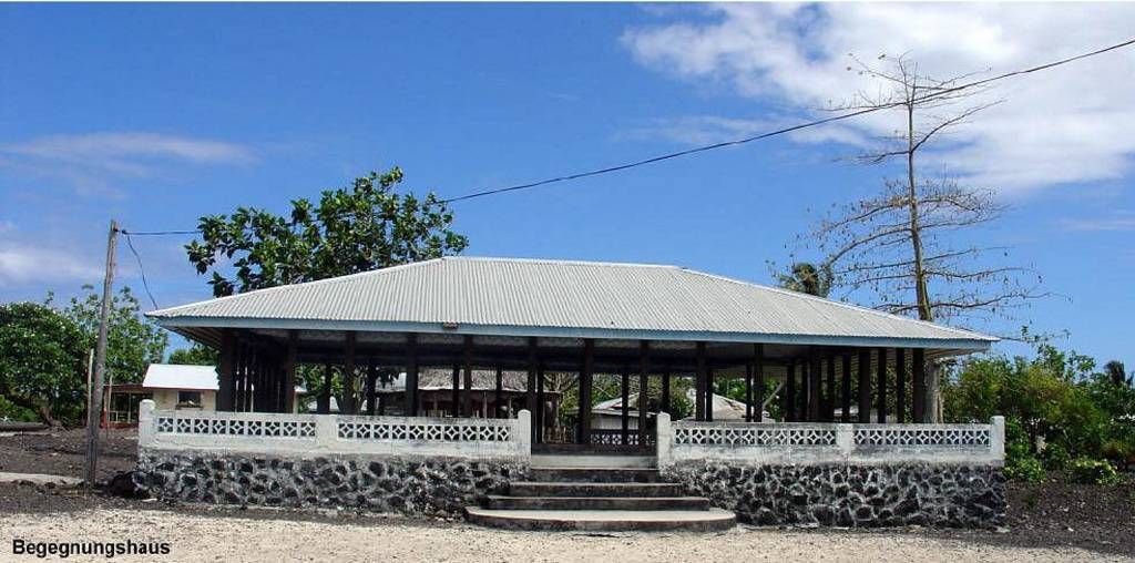Diese Frau hat 13 Kinder gehabt, einer ist vor einem Jahr gestorben, einer ist aus Amerika zurückgekommen weil der Vater vor 3 Jahren mit 94 Jahren gestorben ist, und alle anderen Kinder wohnen in den USA, Neuseeland oder Australien. Im Begegnungshaus lernen wir dann noch einen Bruder von Tai kennen, der uns herzlichst willkommen heisst. Jetzt setzen wir uns auf die Matten, die rundherum am Boden ausgelegt sind. Die Gäste sitzen auf einer Längs-Seite des offenen Hauses. Auf der Schmal-Seite sitzt die Geburtstags-Mutter mit ihren Schwestern. Jeder weiss ganz genau, wo er sich hinzusetzen hat. Alle sitzen im Schneidersitz, auch die 87-Jährige und ihre 90-jährige Schwester. Ausser Paul, tragen alle Männer ihre Lavalava's (Röcke oder Tücher). Nun kommt das Essen. Ein Tablett aus geflochtenen Palmblättern wird vor uns hingestellt. Darauf hat es eine gegarte Brotfrucht, die man auseinanderbricht und isst wie Brot, daneben liegt ein Stück gekochter Wurzel, etwas wie Kartoffeln, aber viel grösser. Daneben hat es einen gekochten Schweinefuss, der mich eher weniger anmacht. Aber die in ein Blatt eingewickelte und darin gekochten Blätter an einer Kokossauce sind köstlich und ich würde am liebsten gleich zwei solche Päcklein essen. Jeder bekommt ausserdem einen etwa 25 cm langen gebratenen Fisch und dazu ein Schüsselchen mit Sauce, oder ist es Suppe? Auf jeden Fall ist es sehr gut. Vor jeden wird ein Teller voll mit gekochtem Gemüse, wie aus dem Wok, und gekochtes Schweinefleisch, dazu eine fritierte Wurst hingestellt. Vor dem Essen wird von einem Mann ein Gebet gesprochen und dann darf gegessen werden. Wir haben nur eine Gabel. Also essen wir wie alle anderen auch, indem wir den Fisch und das Fleisch mit den Fingern auseinander nehmen. Zu Trinken gibt es jede Menge lauwarmen Tee mit viel Milch. Sehr gut! Kaum hat jemand fertig gegessen und schiebt den Teller oder das Basttablett beiseite, kommt ein Mann mit einer Schüssel voll Wasser und einem Handtuch gerannt, damit man sich die Hände waschen kann. Wir sind etwa 15 Leute, die im Kreis auf dem Boden sitzen und essen. Dazu draussen auf dem Hof etwa 20 Personen, Frauen, Männer und Kinder, die gekocht haben und uns bedienen. Sehr viele Teller werden nicht leer gegessen! Nach dem Essen hält der Dorfchef eine lange Rede. Und danach ein Sohn der Jubilarin. Sogar WIR werden darin erwähnt, indem man uns eine gute Weiterreise wünscht. Jetzt spricht auch noch die Geburtstags-Frau und auch hier werden wir erwähnt. Ein schöner Geburtstagskuchen mit einer Kerze wird von ihr angeschnitten und wir singen auf Samoanisch für sie: „Happy Birthday“!