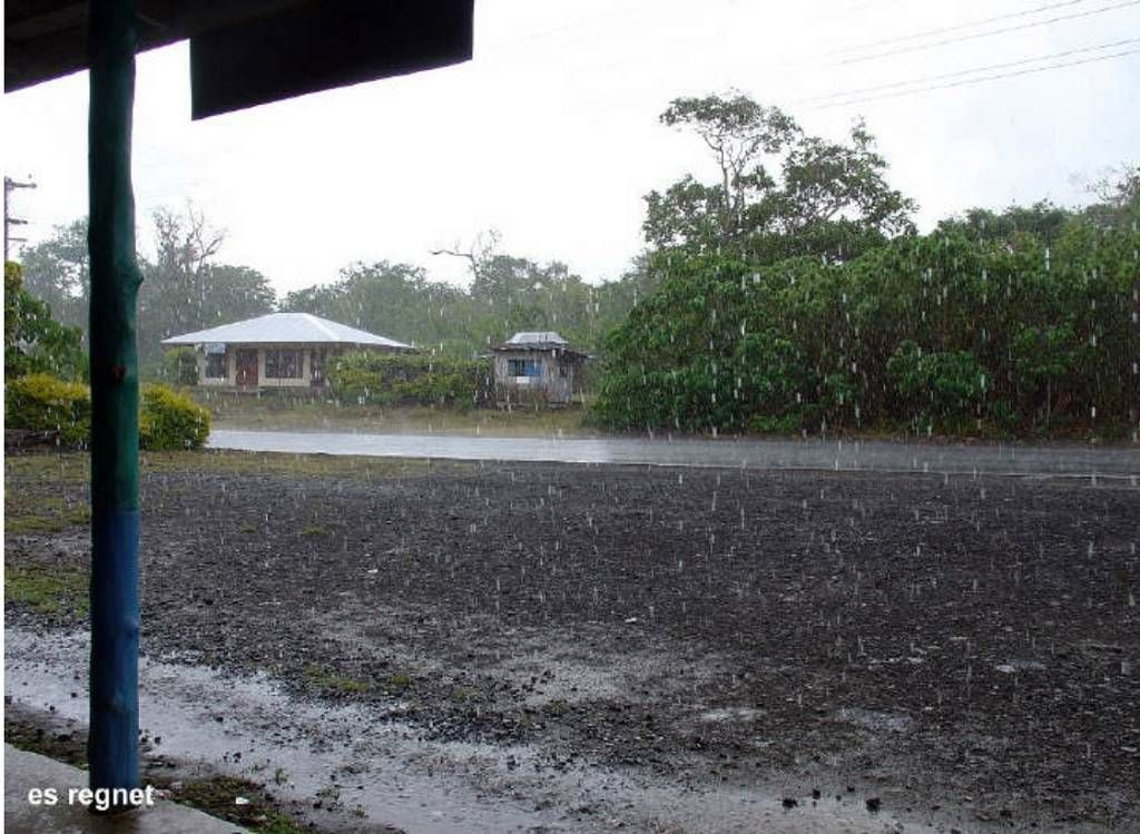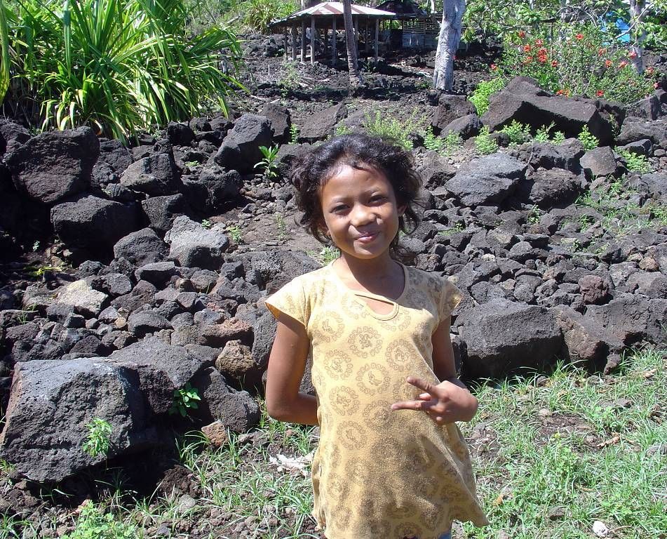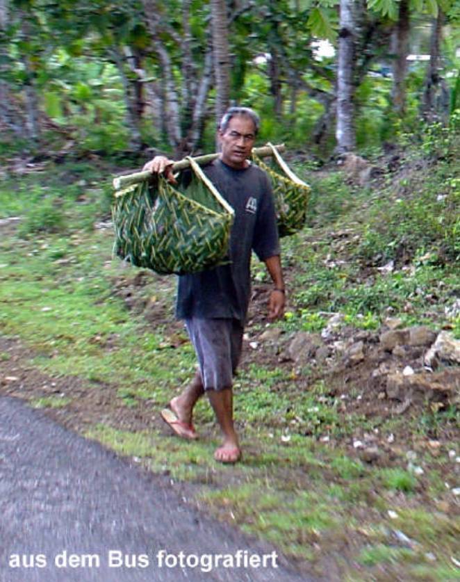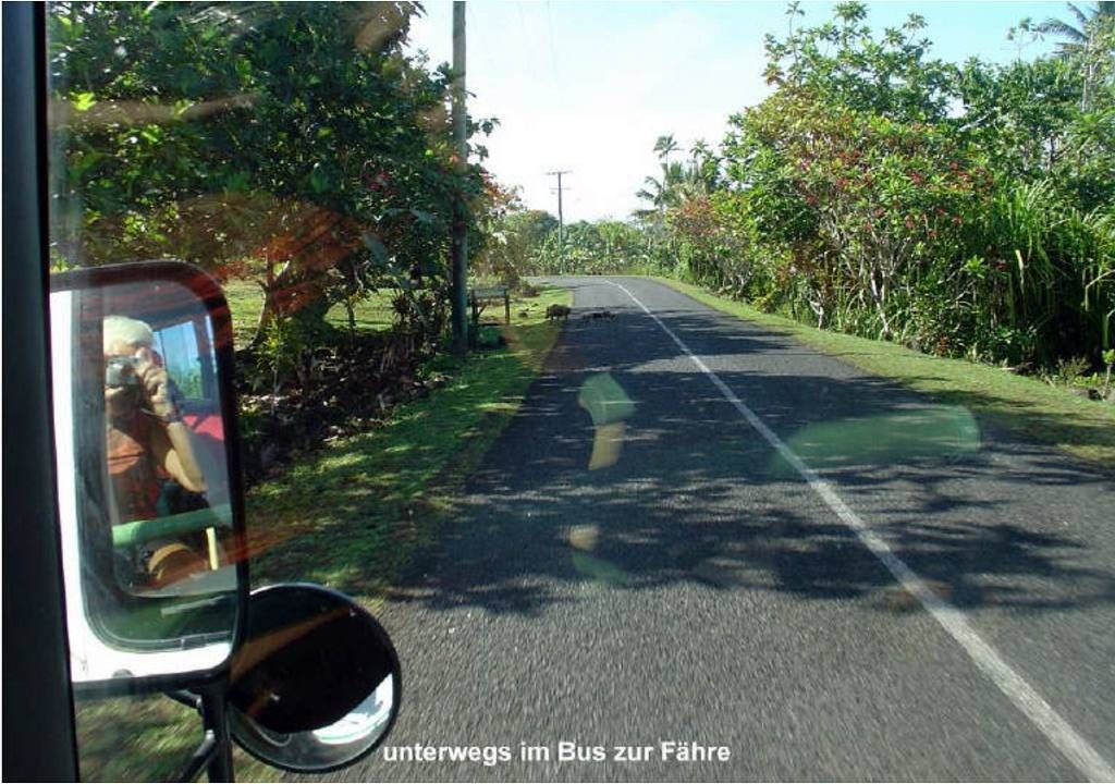 Mit dem 9h-Bus fahren wir in 2¼ Stunden auf der Südseite der Insel nach Saleleloga. Es ist eine sehr schöne Fahrt, in einem Bus, der diesmal KEINE Holzbänke hat. Im Ort Saleleloga beziehen wir sofort im Backpackers-Hotel ein schönes Zimmer. Danach laufen wir zum Fährhafen, um zu wissen, wie weit wir morgen zu laufen haben. Bei einem Chinesen essen wir sehr gutes Gemüse aus dem Wok, viel zu viel Reis und ein Hühnerbein. Von hier laufen wir, natürlich wieder einmal in der allergrössten Mittagshitze, etwa zwei Stunden lang bis zum Markt, wo Paul eine knallgelbe Glacé (Ananas) für 2 Tala (etwa 70 Rappen) kauft. Auf dem Rückweg erwischt uns ein gewaltiger Regenschauer. Aber wir haben Glück und können uns unter einem Dach unterstellen. Im Hotel Jet Over, gegenüber unserem Nachtquartier trinken wir ein kaltes Bier, dass es nur so zischt. Den Rest des Nachmittages verbringen wir in unserem Zimmer, unter der kalten Dusche oder lesend und dösend auf dem Bett. Eigentlich wollten wir ja irgendwo im Meer baden. Aber es ist fast unmöglich, ins Meer zu gelangen. Überall hat es grosse Lavasteine, über die man mühsam klettern müsste, um ins Wasser zu kommen. Und unbedingt einen Knochen brechen wollen wir ja auch nicht!