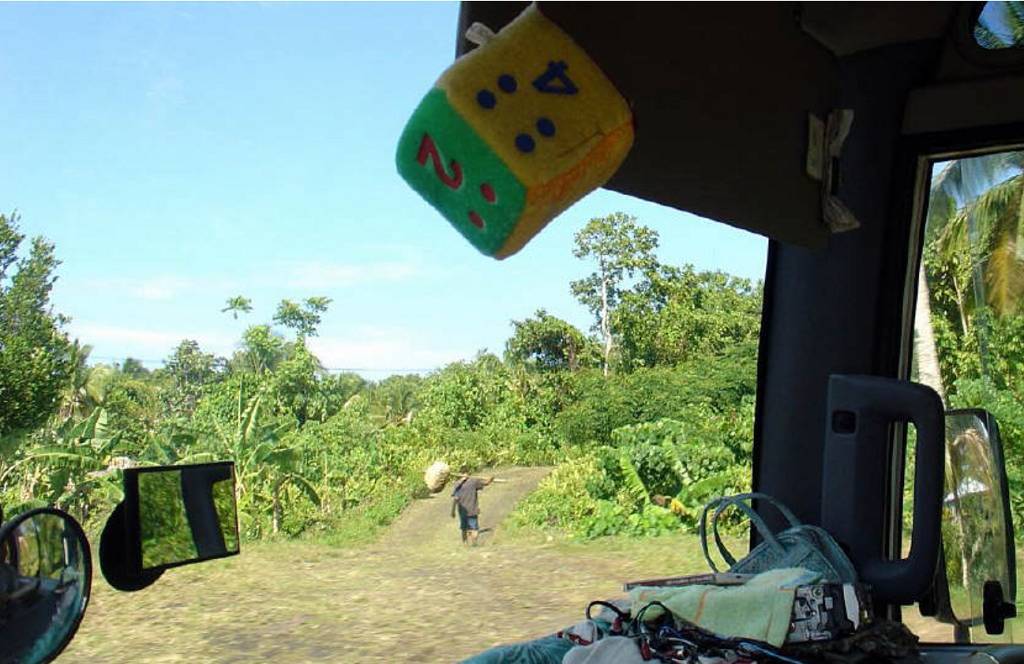 Mit dem 9h-Bus fahren wir in 2¼ Stunden auf der Südseite der Insel nach Saleleloga. Es ist eine sehr schöne Fahrt, in einem Bus, der diesmal KEINE Holzbänke hat. Im Ort Saleleloga beziehen wir sofort im Backpackers-Hotel ein schönes Zimmer. Danach laufen wir zum Fährhafen, um zu wissen, wie weit wir morgen zu laufen haben. Bei einem Chinesen essen wir sehr gutes Gemüse aus dem Wok, viel zu viel Reis und ein Hühnerbein. Von hier laufen wir, natürlich wieder einmal in der allergrössten Mittagshitze, etwa zwei Stunden lang bis zum Markt, wo Paul eine knallgelbe Glacé (Ananas) für 2 Tala (etwa 70 Rappen) kauft. Auf dem Rückweg erwischt uns ein gewaltiger Regenschauer. Aber wir haben Glück und können uns unter einem Dach unterstellen. Im Hotel Jet Over, gegenüber unserem Nachtquartier trinken wir ein kaltes Bier, dass es nur so zischt. Den Rest des Nachmittages verbringen wir in unserem Zimmer, unter der kalten Dusche oder lesend und dösend auf dem Bett. Eigentlich wollten wir ja irgendwo im Meer baden. Aber es ist fast unmöglich, ins Meer zu gelangen. Überall hat es grosse Lavasteine, über die man mühsam klettern müsste, um ins Wasser zu kommen. Und unbedingt einen Knochen brechen wollen wir ja auch nicht!