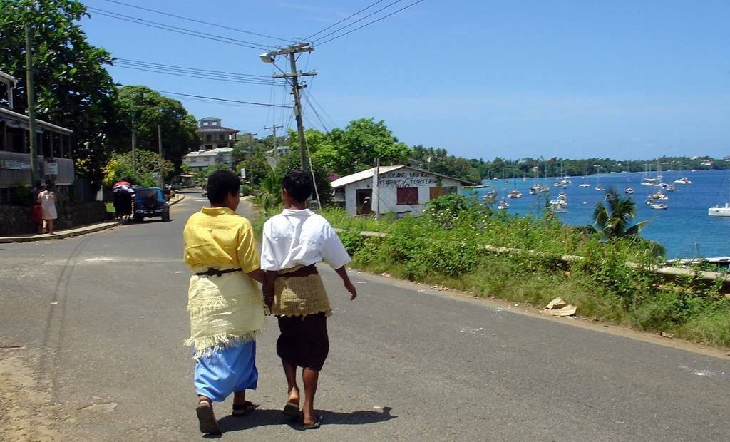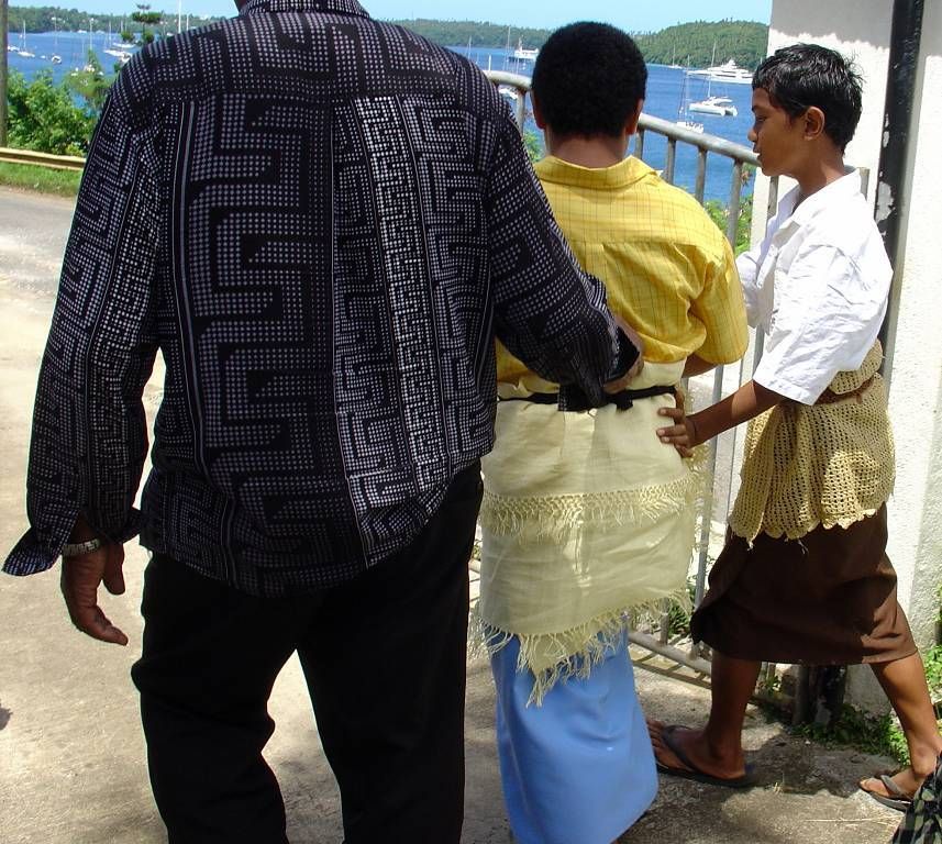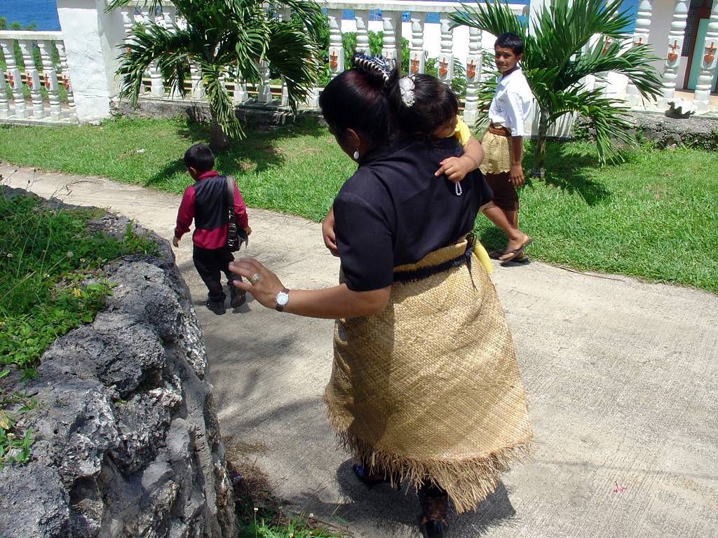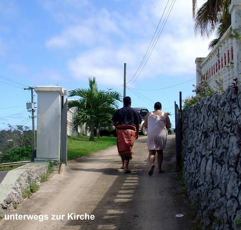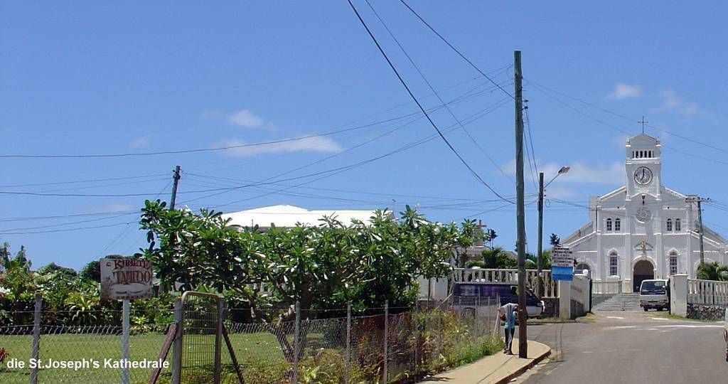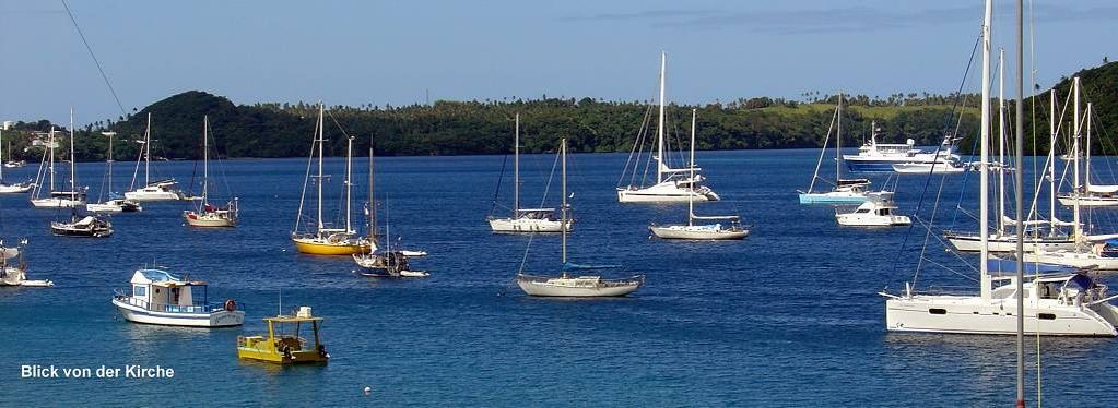Paul setzt mich an Land. Punkt 10h beginnt der Gottesdienst in der grossen katholischen St.Joseph's Kathedrale. Die Kirche ist gestossen voll. Die meisten Leute tragen ihre Bastmatten und ich bin total fasziniert. Die choralartigen Gesänge, mit Orgelbegleitung, sind gewaltig. Die Gläubigen haben mächtige Stimmen, nur der Pfarrer nicht. Die Sopranstimmen sind so hoch, dass es (mir) fast in den Ohren weh tut! Meine Gänsehaut ist vorprogrammiert! Das Volk strömt in Massen zur Kommunion (Abendmahl), unsere Pfarrer würden sich freuen..., und ich bin tief beeindruckt von diesem Gottesdienst auch wenn ich immer nur AMEN verstehe. Die Ambiance ist total verschieden zu den Polynesischen Kirchen. Dort war die Begeisterung und Lebensfreude der Leute viel mehr zu spüren.