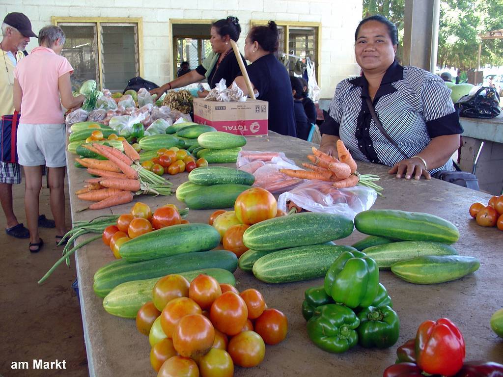 Heute ist Gott sei Dank wieder „anständiges“ Wetter! Das heisst, es ist sonnig, leicht bewölkt und etwa 28° warm. Um 10h fahren wir mit Anne und Werner an Land und holen erst mal Geld bei der Geldmaschine. Die Währung hier heisst Paanga (TOP) und 1 solcher Paanga ist ca. 52 Rappen wert. Dann kaufen im „duty free“ Shop Zigaretten für Doris und Andy ein. Wenn man hier ankommt und einklariert hat, kann man 48 Stunden lang „duty free“ einkaufen, der Passstempel reicht als Beweis. Bei den Zigaretten macht der Preisunterschied bestimmt etwas aus, aber das Bier kostet genau gleich viel wie im Laden beim „Chinesen“, ist also ein totaler Witz! Wir schlendern weiter durch den Ort Neiafu, der die Hauptstadt von den Vava'u Inseln ist und ca. 5600 Einwohner hat. Wir begegnen ganz vielen Tonganern, die schwarz angezogen sind und in eine Ta'ovala-Matte gehüllt sind. Das sieht aus, als ob sie einen alten Bastteppich wie einen Rock um sich geschlungen haben, Kinder, Männer und Frauen, Junge und Alte. Der Markt ist sehr bunt und malerisch. Wir kaufen frisches Gemüse und Früchte ein. Auf dem Rückweg machen wir beim Restaurant „The Dancing Rooster“ einen Halt und trinken eine Cola. Vor dem Restaurant weht eine Schweizer Flagge und tatsächlich ist der Inhaber ein Baselbieter aus dem Laufental, aus Röschenz. Er verkauft auch diverse Lebensmittel und wir kaufen bei ihm Fleisch und Brot. Er schenkt uns ein Gläschen Konfitüre aus der Schweiz (von seiner Mama gemacht). Irgendwann werden wir in seinem