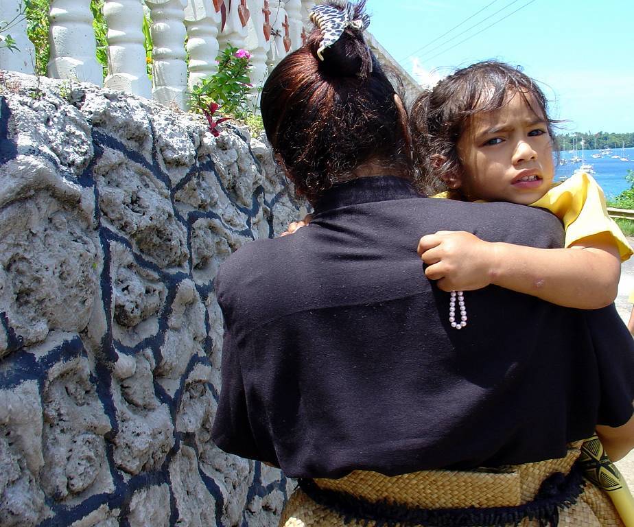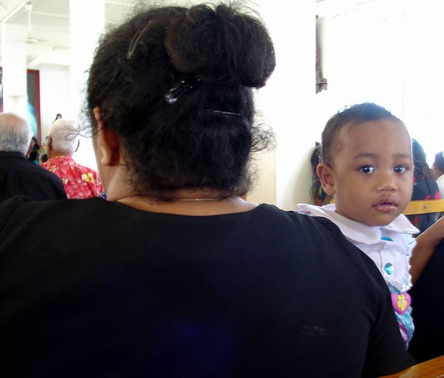 Paul setzt mich an Land. Punkt 10h beginnt der Gottesdienst in der grossen katholischen St.Joseph's Kathedrale. Die Kirche ist gestossen voll. Die meisten Leute tragen ihre Bastmatten und ich bin total fasziniert. Die choralartigen Gesänge, mit Orgelbegleitung, sind gewaltig. Die Gläubigen haben mächtige Stimmen, nur der Pfarrer nicht. Die Sopranstimmen sind so hoch, dass es (mir) fast in den Ohren weh tut! Meine Gänsehaut ist vorprogrammiert! Das Volk strömt in Massen zur Kommunion (Abendmahl), unsere Pfarrer würden sich freuen..., und ich bin tief beeindruckt von diesem Gottesdienst auch wenn ich immer nur AMEN verstehe. Die Ambiance ist total verschieden zu den Polynesischen Kirchen. Dort war die Begeisterung und Lebensfreude der Leute viel mehr zu spüren.