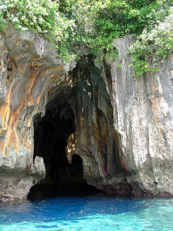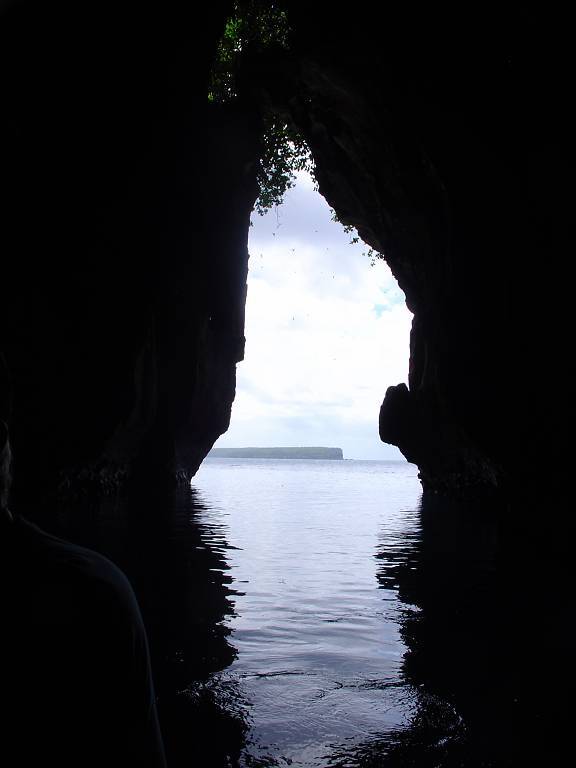 Am Nachmittag nehmen wir die „sail away's“ mit und fahren mit unserem Dinghy ans nördliche Ende der Insel Kapa. Hier besuchen wir die „Swallow's Cave“. Wir können direkt mit dem Dinghy in die Höhle paddeln und sind sofort total fasziniert. An der hohen Decke hat es ein riesiges Loch, wo man die Bäume und den Himmel sehen kann. Weiter innen in der Höhle hat es Tausende von Schwalbennestern an der Decke. Viele Schwalben fliegen aufgeregt herum. Die Wände schillern in allen Farben und das Wasser ist so klar, dass man bis auf den Grund der Höhle sehen kann. Wir sehen einen grossen Schwarm kleiner Fische. Wenn die Sonne herein scheint ist das Wasser unendlich blau. Wunderschön!