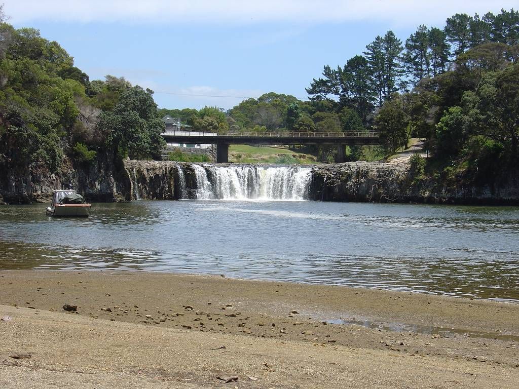 Paul und ich fahren mit Anne und Werner im „Popey“ zum Haruru Wasserfall. Das Wetter ist herrlich und wir folgen dem Waitangi River Richtung Meer. Der Wanderweg ist sehr angenehm im Schatten und flach. Unterwegs sehen wir Kormorane in ihren Nestern und die Jungen die ihre Eltern um Fisch anbetteln. Am Ende einer kleinen Holzbrücke, machen wir eine Pause und Anne und Werner teilen mit uns ihre mitgebrachten Äpfel und ihr Wasser. Wir haben vor lauter Besuch alles vergessen! Wir kehren um und laufen den Weg wieder zurück. Beim Anfang der Brücke (nach etwa 400 m, merkt Paul, dass er unseren Rucksack liegen gelassen hat. Der Autoschlüssel, Schiffsschlüssel, WC-Schlüssel, 1000 Kiwi-Dollars (etwa 700 SFr. vorher, aus dem Automaten geholt), zwei Kreditkarten, die ID's, alles ist in dem Rucksack drin. Paul läuft im Laufschritt zurück zu unserem Rastplatz. Wir anderen warten auf ihn und atmen erleichtert auf, als Paul MIT Rucksack wieder kommt. Uff, Glück gehabt!!! Zurück beim Auto fahren wir ans Meer und essen in einem alten Zucker-Schiff, das zum Restaurant umfunktioniert wurde, ein sehr spätes Mittagessen. Pommes, Chicken-Nuggets und Fish-Nuggets. Das Zeug wird in Papier eingepackt an den Tisch gebracht und man isst direkt aus dem Papier. Anne und Werner bekommen ihre Portionen und fangen schon mal an zu essen. Als Paul und ich NICHTS bekommen, fragt Werner am Buffet, wo denn unser Essen bleibe? Eins von den Papierpaketen wäre unseres gewesen, sagt man ihm. Aha! Also essen wir alle zusammen aus den Papieren und es hat genug für alle!