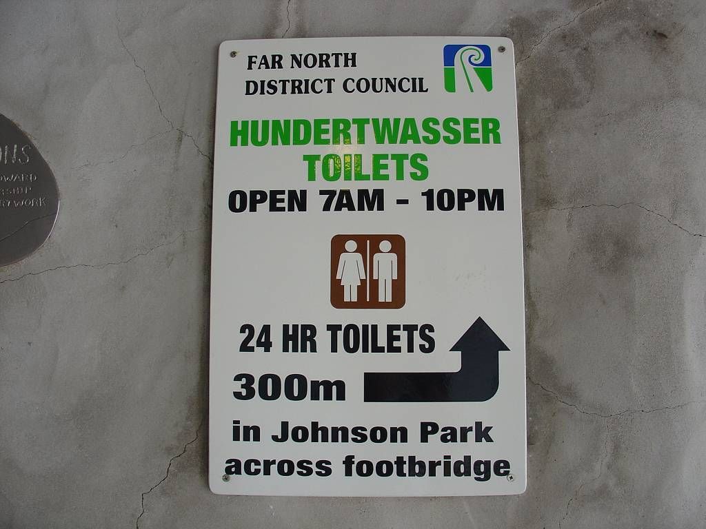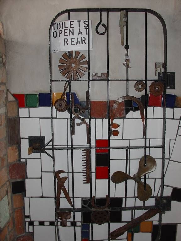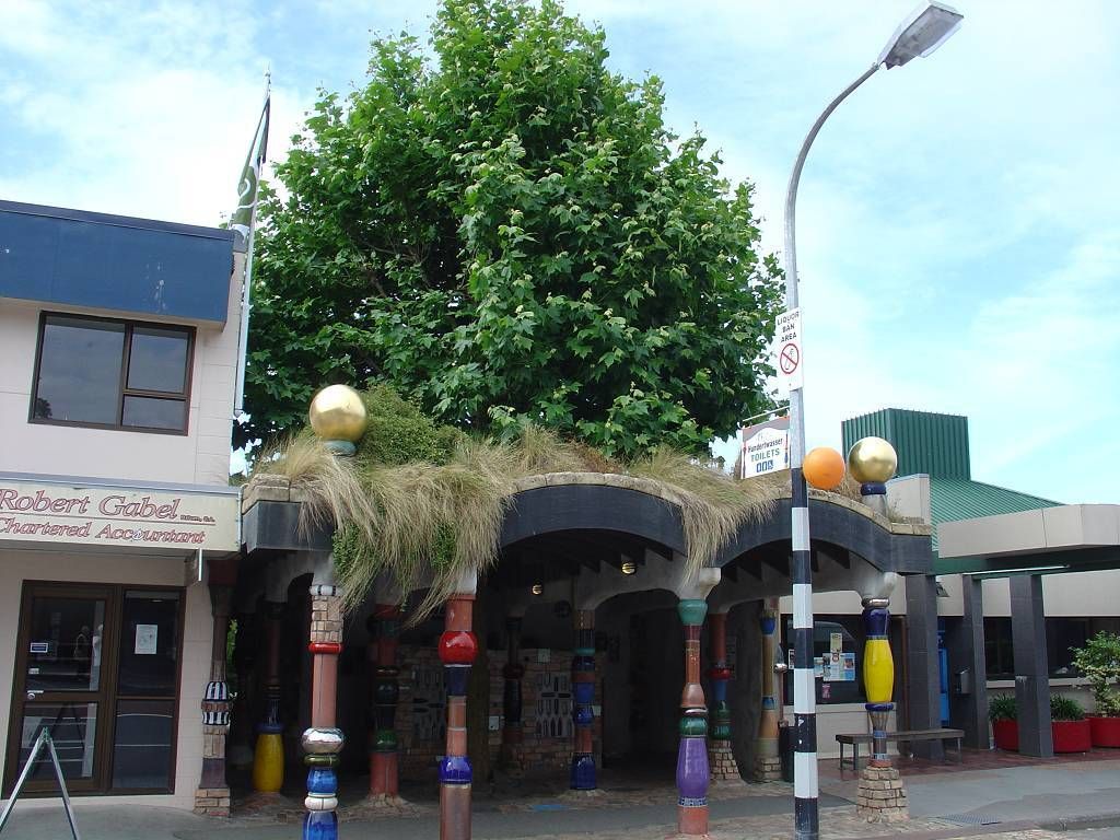 Hundertwasser hat 28 Jahre lang in Kawakawa gewohnt und hat im Jahre 1999 die öffentlichen Toiletten der Ortschaft Kawakawa gestaltet.
