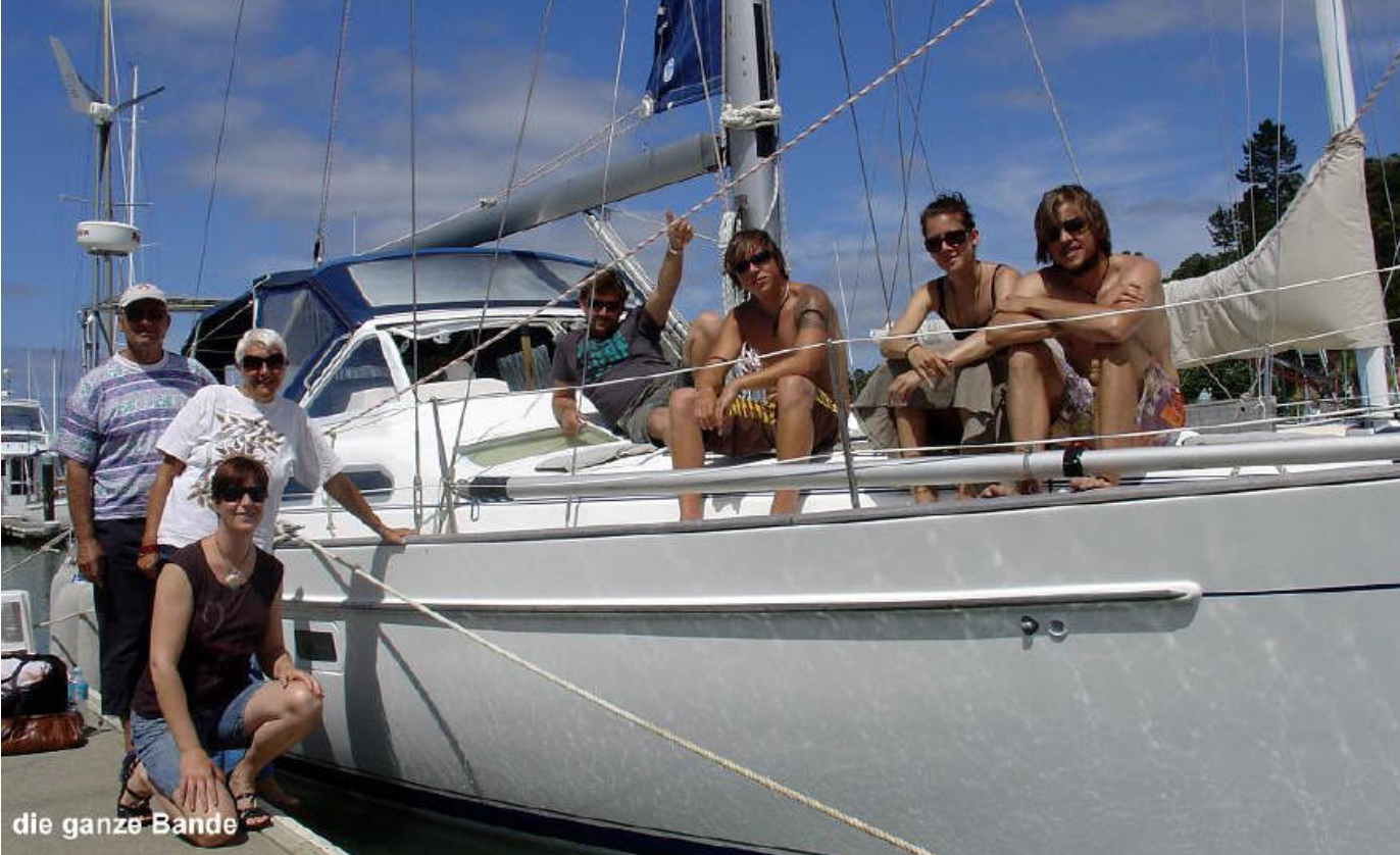 Danach wird auf dem Schiff herumgeräumt und geputzt. Die Betten in der Bugkabine werden frisch bezogen. Wir bekommen nämlich heute Abend Besuch. Paul's Gross-Cousine (oder wie heisst das?), Alexandra , die Tochter von Paul's Cousin Heinz, wohnt mit ihrem Mann Martin in Auckland. Wir haben ihnen ein Auto, den dunkelgrünen „Popey“, (Mitsubishi, 4 x 4) abgekauft, und den bringen sie uns heute nach Opua. Alexandra hat uns gefragt, ob sie noch zwei Leute mitbringen dürften (die schlafen in ihrem Van) und wir haben ja gesagt.