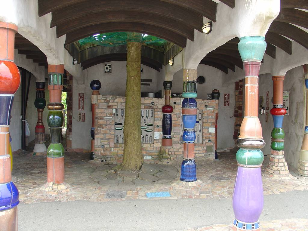 Hundertwasser hat 28 Jahre lang in Kawakawa gewohnt und hat im Jahre 1999 die öffentlichen Toiletten der Ortschaft Kawakawa gestaltet.