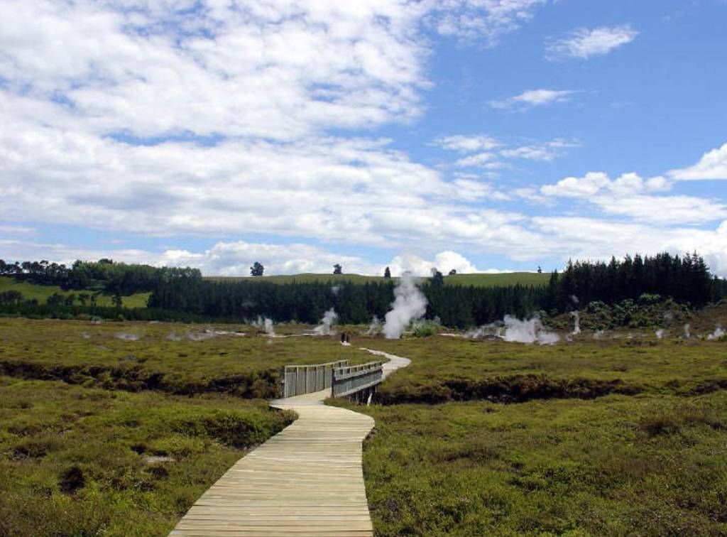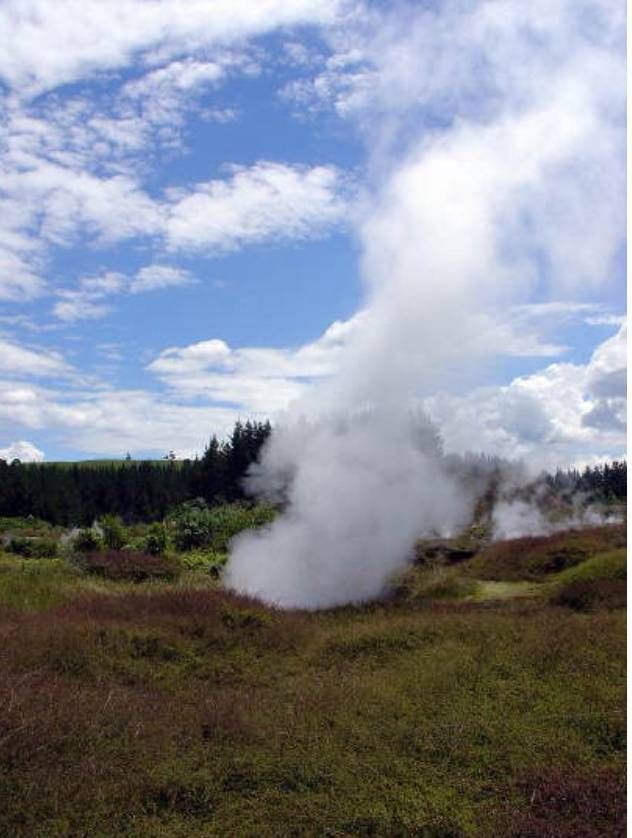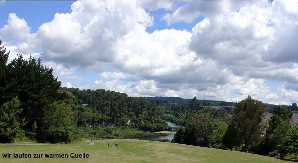 In Taupo wandern wir ein kurzes Stück zu einem warmen Fluss, der in den Waikato River fliesst. Werner und ich baden darin die Füsse. Aua! Das ist ja richtig heiss!