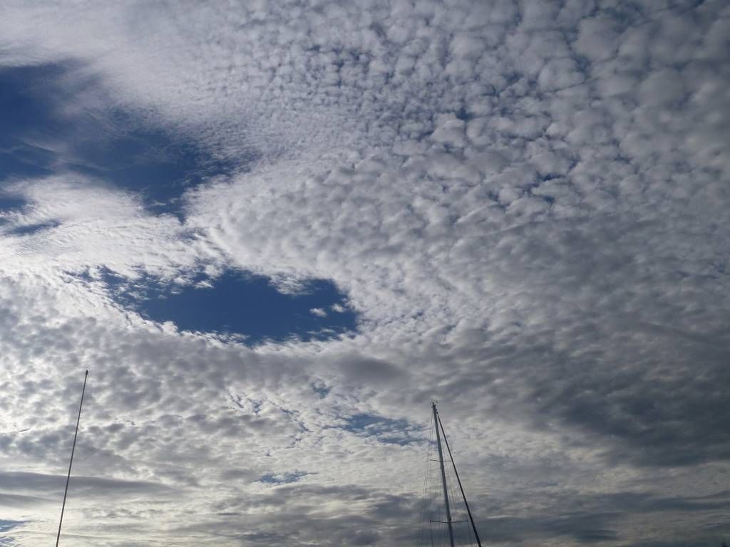 Paul fährt in die Marina und wäscht eine Maschine voll Wäsche. Er bringt sie zum Schiff und ich hänge sie auf. Heute ist schönes Wetter angesagt, aber so überzeugend sieht es eigentlich nicht aus.