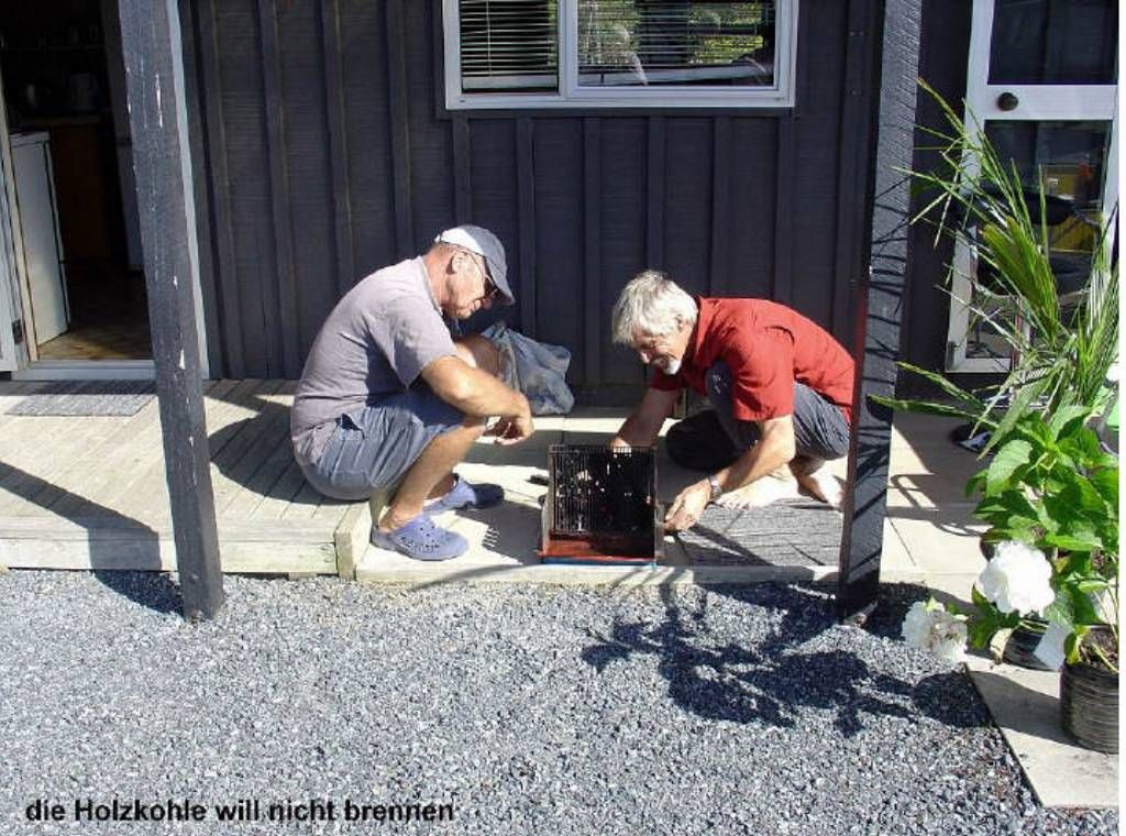 Weil die Holzkohle irgendwo aus Französisch Polynesien partout nicht so richtig brennen will, dauert es halt ein wenig länger, bis die Steaks gebrutzelt sind. Es ist schön und gemütlich und wir geniessen den Abend zu viert.