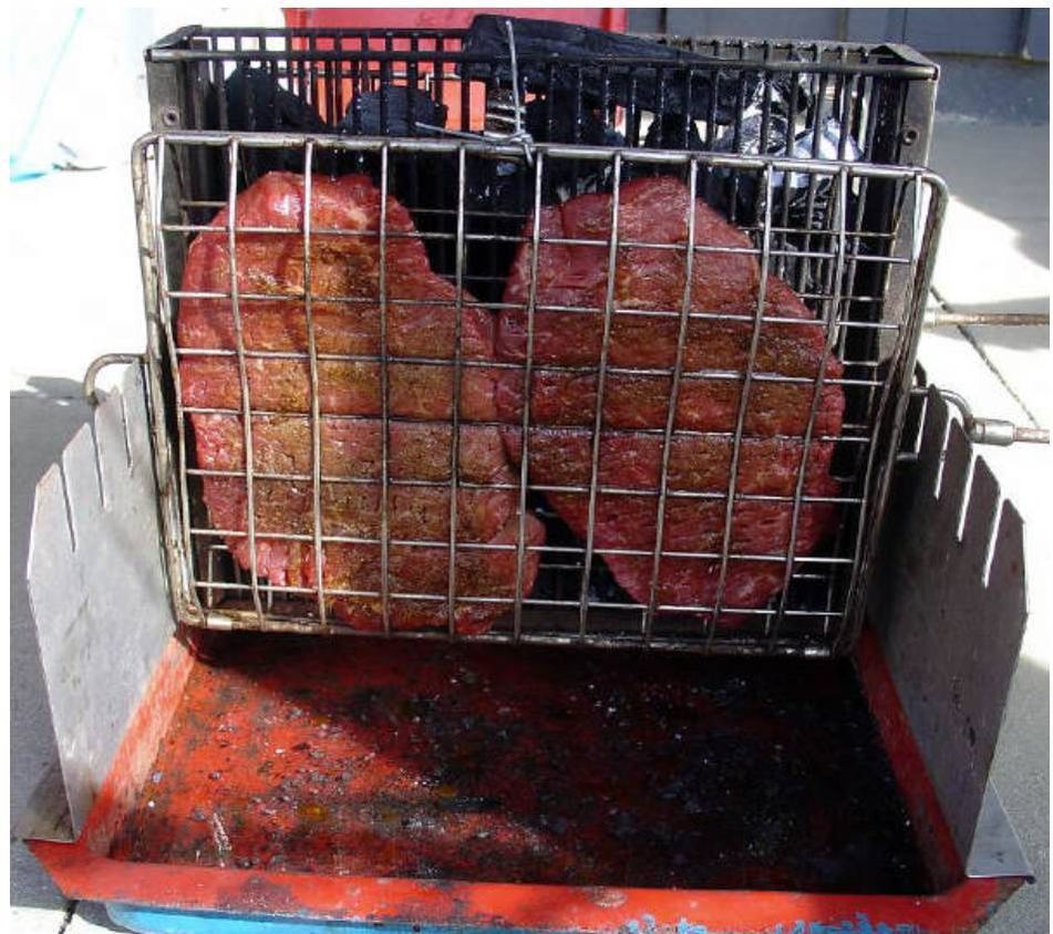 Zum Abendessen gibt es riesige Beef-Steaks vom Grill, Kartoffeln, gemischten Salat und wieder Glacé.