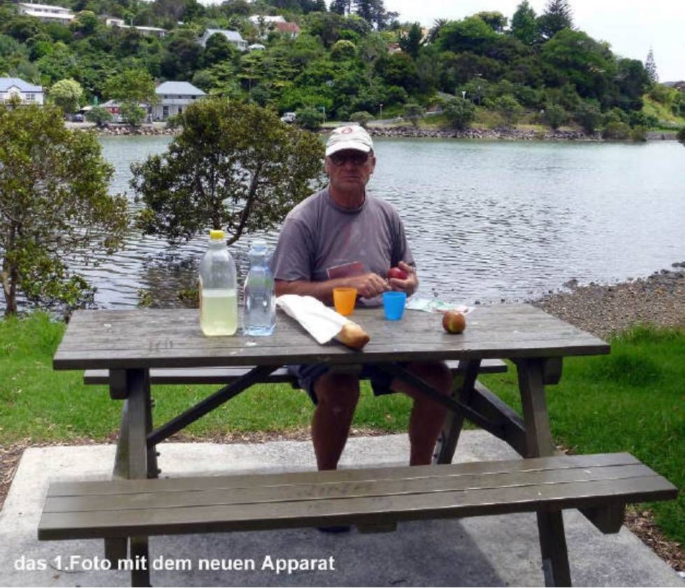 Die Sonne scheint. Anne hat uns fein säuberlich ein gutes Frühstück hingestellt. Um 9h fahren wir los in den Ort Kerikeri. Wir müssen zur Bank. In Waipapa müssen wir notfallmässig einen neuen Fotoapparat kaufen. Der Akku an unserem alten Apparat macht trotz eben erfolgter Aufladung keinen Wank mehr. Ein neuer Akku würde 120$ kosten. Der neue Fotoapparat kostet 283$ inclusive einer 4 GB Speicherkarte. Und eine neue blaue Blache müssen wir auch noch besorgen. Die alte hat Werner. Die Gummizüge dazu haben wir auf der MABUHAY vergessen und müssen auch noch gesucht werden.