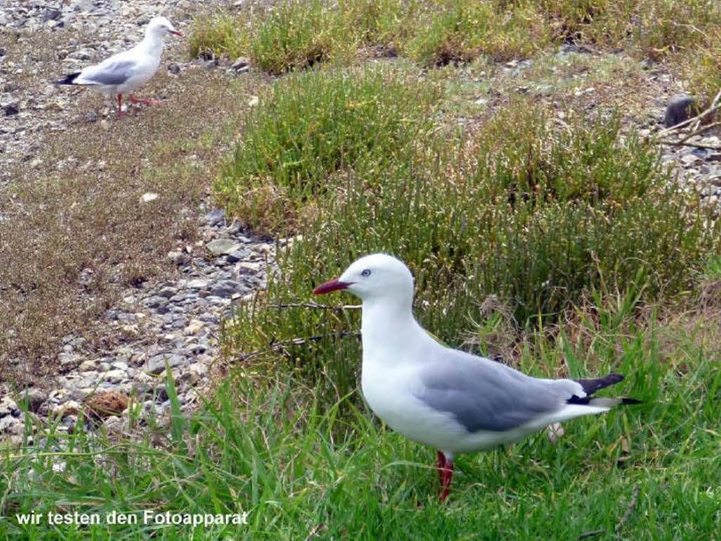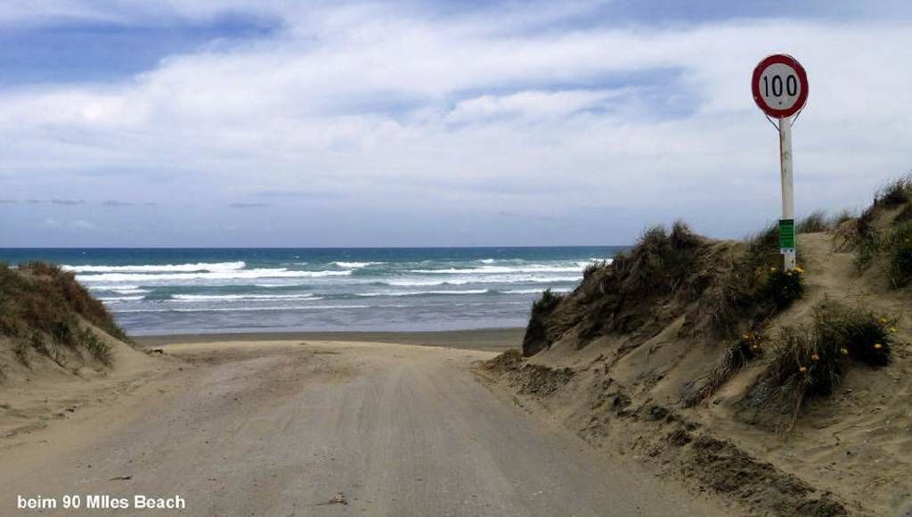 Und nun können wir endlich nordwärts auf Erkundungstour fahren. In Mangonui essen wir am Meer unser Picknick. Dabei müssen die anwesenden Möwen als Models dienen, um den neuen Fotoapparat zu testen und ein wenig kennen zu lernen. Jetzt haben wir das einigermassen im Griff und können weiter Richtung Awanui. Wir machen einen Abstecher an den 90 Miles Beach, zum Waipapakauri Beach, an der Tasmansee. Dort lernen wir am Strand ein Schweizer-Ehepaar kennen, vom Bodensee. Die sind hier in den Ferien und der Bruder der Frau ist auch mit einem Schiff unterwegs so wie wir. Den werden sie in Auckland treffen und mit ihm ein wenig segeln. Hier auf diesem 90 Miles Beach dürfte man eigentlich die ganze Strecke bis fast zum Cape Reinga mit den Autos auf dem Strand fahren. Aber wir finden das nicht nötig und lassen es deshalb sein.
