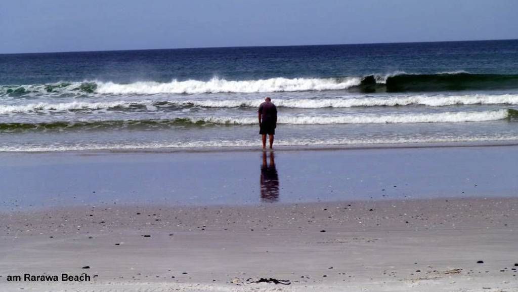 Um 15h sind wir schon wieder auf der Pazifikseite, der etwa 110km langen nördlichsten Halbinsel von Neuseeland. Auf dem DOC (Departement of Conservation) - Camping von Rarawa Beach stellen wir den Popey ab und montieren die blaue Blache daran. Das ist gar nicht so einfach, ohne Werner's Auto! Aber irgendwie schaffen wir es doch noch und machen danach einen Spaziergang zu den wunderschönen blendend weissen Sanddünen. Wir schauen zu, wie die harten Kiwis das eisige Wasser und die brandenden Wellen geniessen. Die Sonne brennt heiss auf den Strand. Aber sobald abends die Sonne weg ist, wird es ziemlich kalt.