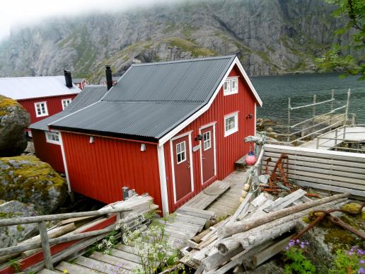 Um 10h10 fahren wir weg von Reine. Es regnet. Zuerst geht es nochmals nach Süden, nach Å, so heisst nämlich das südlichste Dorf der Lofoten und hier beginnt die E 10, die Strasse die durch die ganzen Lofoten bis nach Narvik führt. Das Dorfzentrum von Å ist ein einziges Freiluftmuseum. Paul, mein Anti-Fisch-Esser will auf gar keinen Fall ins Stockfischmuseum!!!
