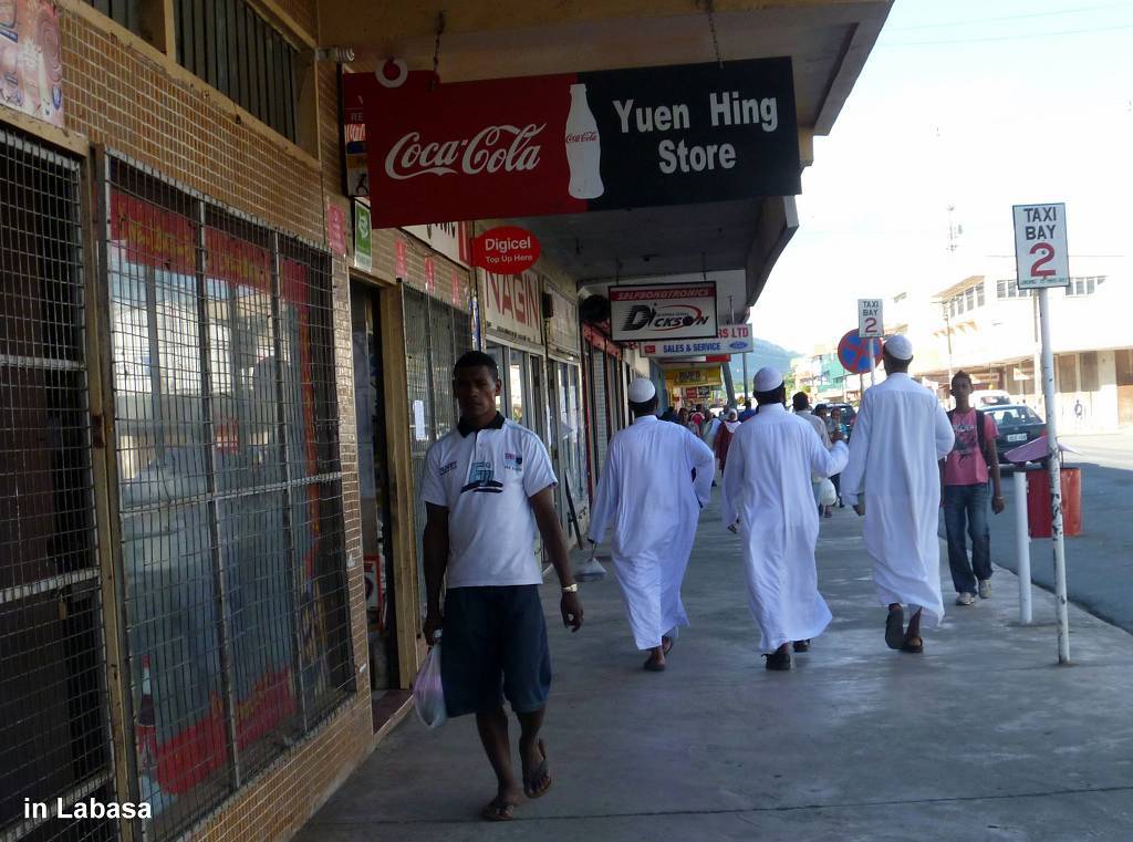 Um 12h30 erreichen wir den Busbahnhof in Labasa und hier ist es ein ganzes Stück heisser als in Savusavu. Mann, herrscht hier ein Gewimmel und Gedrängel von Menschen und es riecht penetrant nach Autoabgasen.