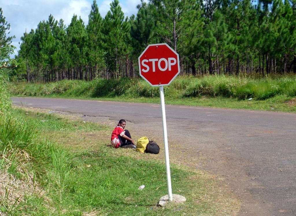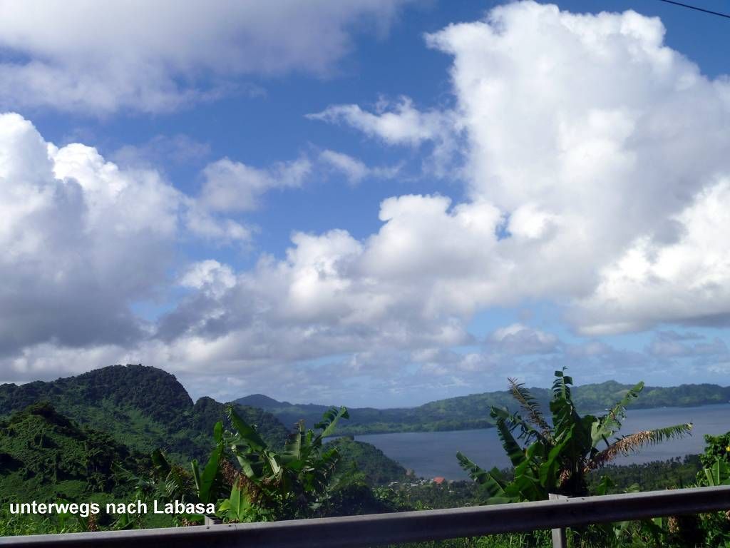 Um kurz vor 9h sind wir beim Bus der nach Labasa fährt. Der ist schon fast voll und Paul und ich blockieren den Eingang, indem wir für 8 Leute die Tickets kaufen. Endlich kommen auch die anderen, die „Amigos“, die „sail aways“ und die „yellow dogs“ und wir können den Eingang freigeben. Wir besetzen die 8 hintersten Plätze im Bus. Der Bus fährt überpünktlich, um 9h30 ab. Die Fahrt dauert 3 Stunden und führt über Berge und Täler quer über die Insel, nach Labasa (Hauptstadt der Insel Vanua Levu) auf der Nordseite. Die Insel ist sehr grün, abwechslungsreich und schön und je nördlicher wir kommen, desto mehr Zuckerrohrfelder hat es. Verkehr hat es sehr wenig, wir sind fast alleine unterwegs.