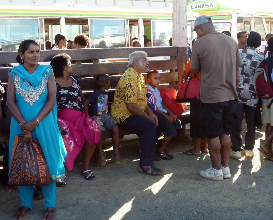Um 12h30 erreichen wir den Busbahnhof in Labasa und hier ist es ein ganzes Stück heisser als in Savusavu. Mann, herrscht hier ein Gewimmel und Gedrängel von Menschen und es riecht penetrant nach Autoabgasen.