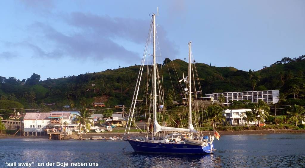 Um 17h sind wir bei der „sail away“ zu einem Abschiedsimbiss eingeladen. Wir gehen ja morgen nach Suva und sie wollen mit der „Amigo“ weiter segeln.