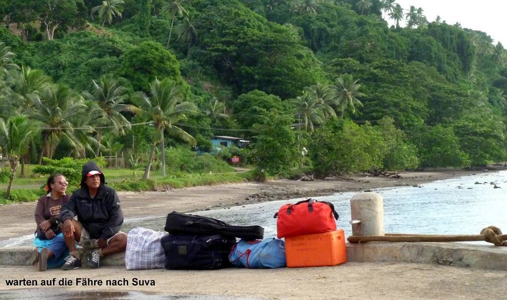 Um 6 h kommt die Fähre aus Suva an und hornt 2 Mal lautstark. Es regnet und ist tropisch feucht warm. Aber jetzt nur nicht jammern, wir wollten ja warm haben!