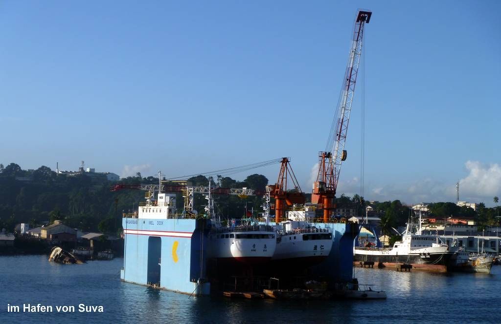 Aber jetzt reicht es uns und wir sind fast am verhungern. Bei einem Chinesen essen wir jeder einen grossen Teller voll Chowmein für 6 FJ$ (3 SFr.) Also bei solchen Preisen kochen wir nicht an Bord! Später treffen wir zufällig im Savusavu Yachtclub auf die „sail aways“ und die „Amigos“ und trinken zusammen gemütlich noch ein Bier.
