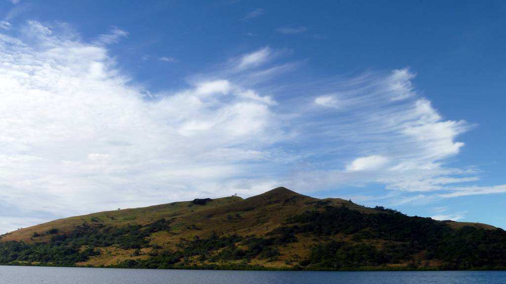 Um 8h30 fahren wir los. Kein Wind, also motoren wir. Es ist halbbewölkt und verspricht ein schöner Tag zu werden. Die Fahrt der Nordküste von Viti Levu antlang ist echt schön. Grüne und gelbe Hügel wechseln sich ab. Dazwischen immer wieder Zuckerrohrfelder und auf sehr vielen Hügeln eine Antenne. Kein Wunder habe ich mit meinem Vodafone-Stick noch in der hintersten Ankerbucht Internetverbindung. Und es funktioniert erst noch ganz prima!