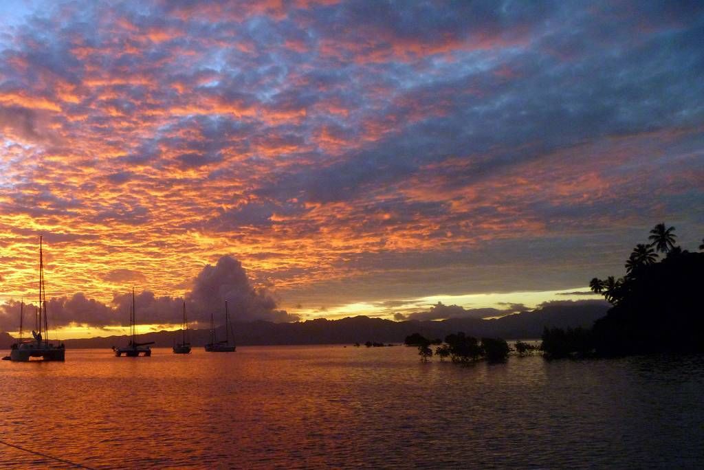 Beim Abendessen (fidschianische Bratwurst, fidschianischer Mangold mit Kraut und Stielen, fidschianische Kartoffeln, alles sehr gut), mit Licht im Cockpit, belästigen uns massenweise fliegende Ameisen. Wir flüchten nach unten.