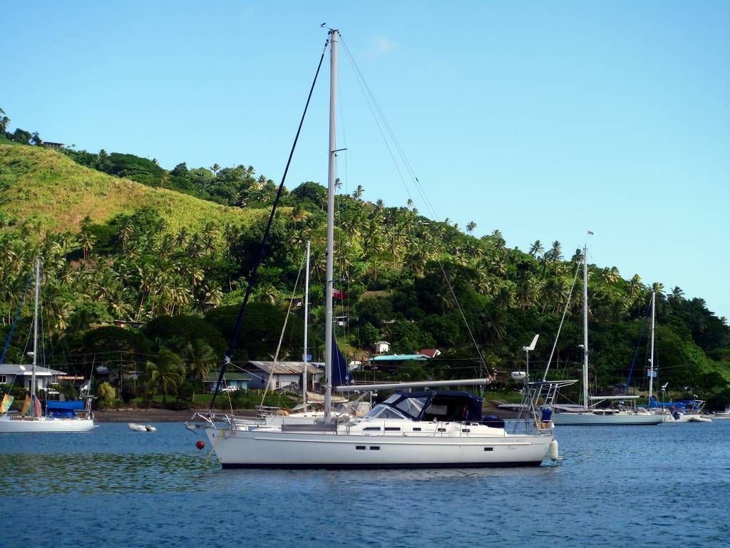 Etwa 50 Minuten später ankern der Katamaran „Catwagon“ und die „Cobalt“ genau vor unserer Nase. Dabei wäre die Bucht riesengross! Die beiden Schiffe lagen vor uns in Savusavu an den Bojen.