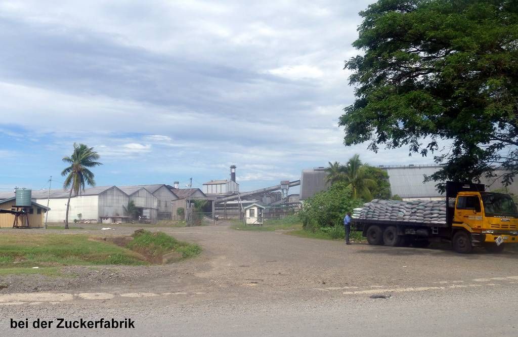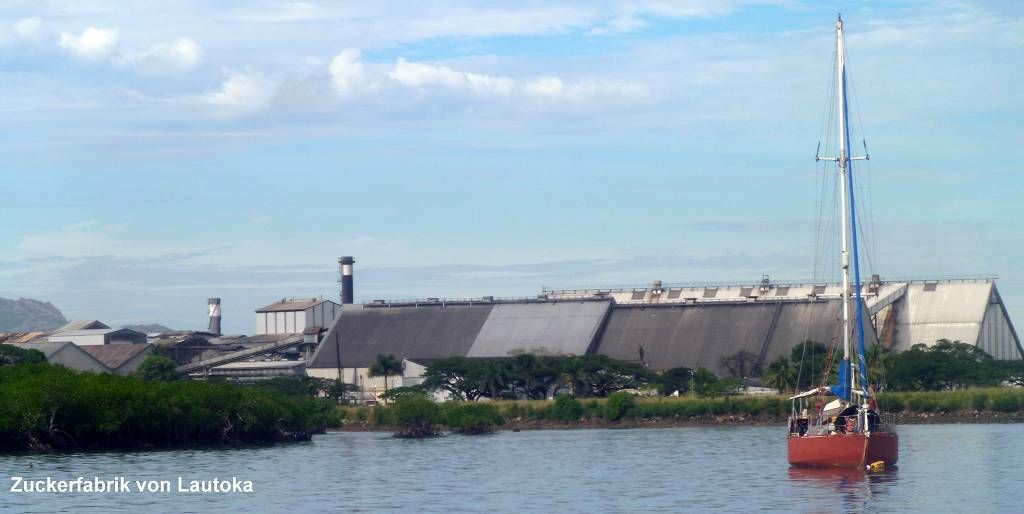 Um 10h sind wir schon unterwegs zum Einklarieren. Weil gestern ein Feiertag war, hat es heute sehr viele die einklarieren wollen. Wir müssen hier „nur“ national einklarieren. Das heisst, wir müssen melden, dass wir hier sind. Den anderen Seglern (Catwagon und Cobalt) dauert das viel zu lange und sie gehen erst mal shoppen. Jetzt sind wir schon an der Reihe und 2 Minuten später sind wir draussen. Nun laufen wir an der Zuckerfabrik vorbei in die Stadt Lautoka. Wir schauen uns ein wenig um, kaufen im Markt Gemüse und eine Ananas, essen beim Chinesen eine Kleinigkeit, Paul einen Riesentopf Hühnersuppe mit viel Gemüse und wenig Huhn und ich Chili Chicken mit Reis, dazu Cola und FijiWater für zusammen 14.95 FJ$ (7.50 SFr.). Per Taxi zurück zum Hafen und um 13h sind wir wieder auf der MABUHAY. Und natürlich werden wir wieder einmal zünftig eingesalzen, inzwischen hat es nämlich 15 Knoten Wind und wir müssen mit dem Dinghy gegenan.