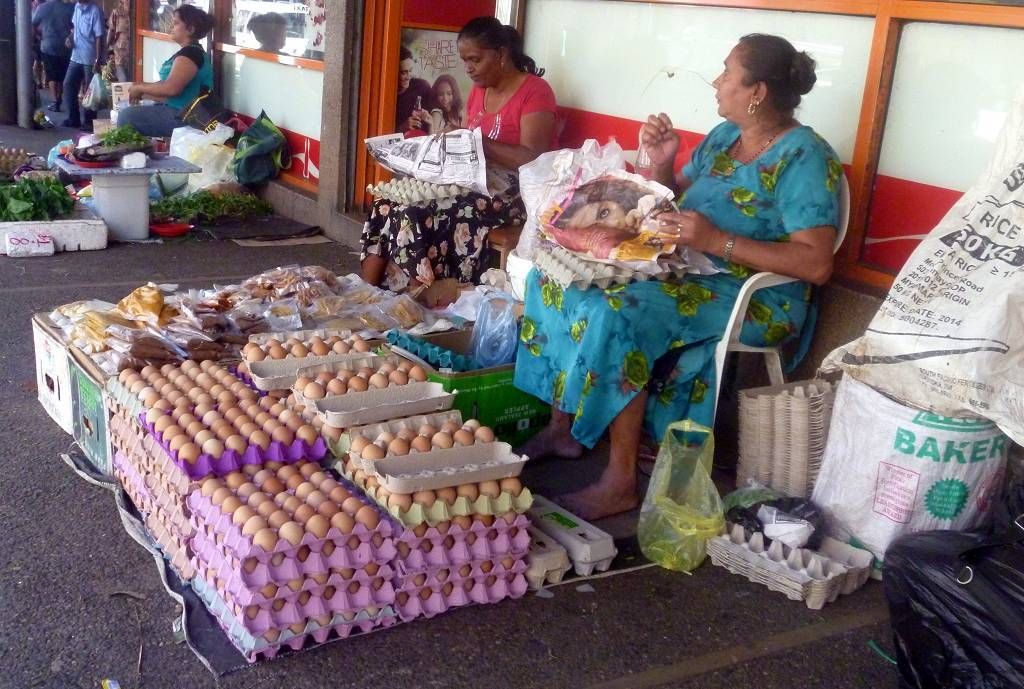Ahhh schön, heute scheint wieder mal die Sonne. Um 11h sind wir im Zollbüro und wollen international ausklarieren. Der brummlige Beamte sagt uns, wenn wir ausklariert seien, müssten wir Fidschi innerhalb einer Stunde verlassen haben. Aha, nein das wollen wir nicht, wir wollen zuerst noch in die Stadt, Mittagessen und noch ein paar Kleinigkeiten einkaufen. Der Zöllner sagt uns, dann müssten wir heute noch vor 16h ausklarieren oder morgen. Aber weil morgen Samstag sei, koste es uns dann 86 FJ$ (etwa 43 SFr.) Overtime. Gut, dann kommen wir heute um 14h wieder her.
