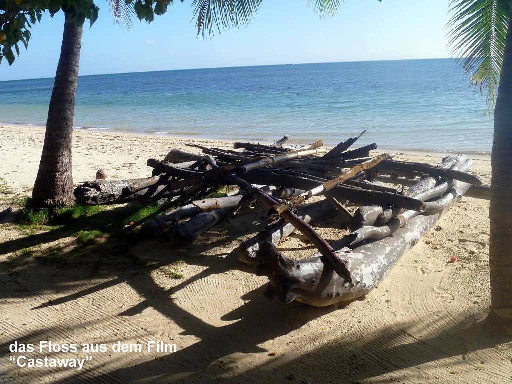 Direkt neben der Hochzeitsgesellschaft liegt das Floss aus dem Film Castaway mit Tom Hanks.