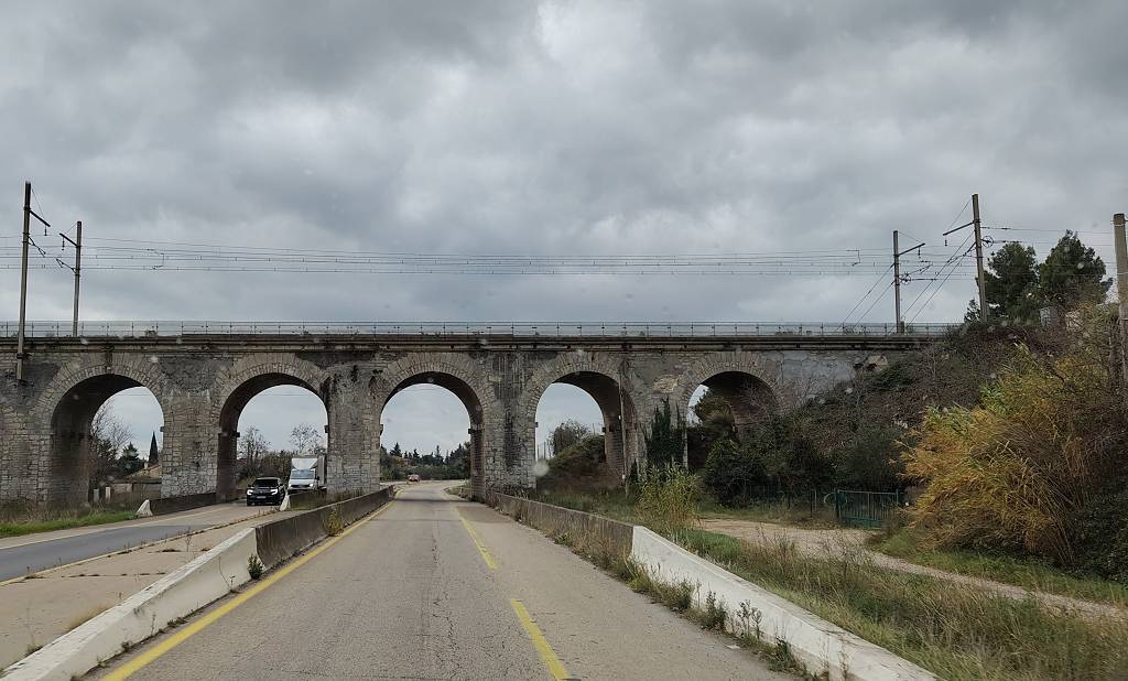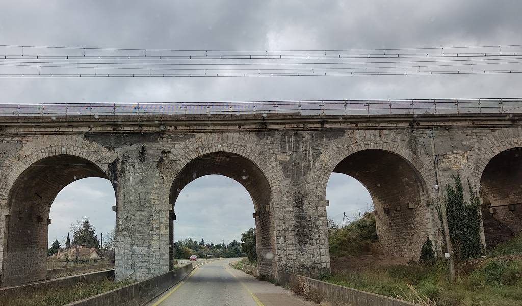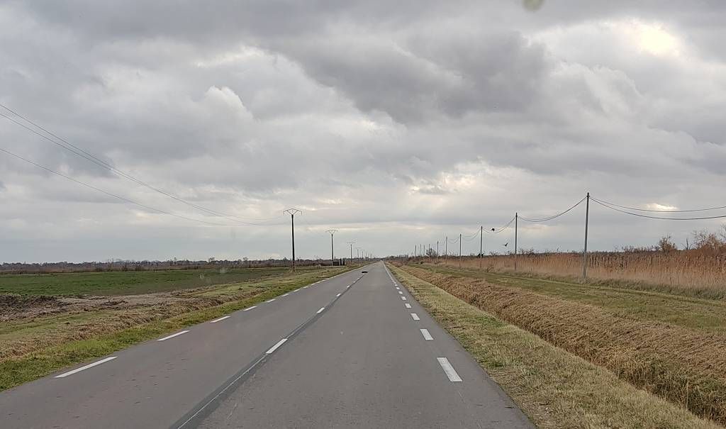 Beim Aufstehen hat es Nebel, der sich aber sehr schnell auflöst und die Sonne ist wieder da. Heute ist in St. Paul-Trois-Châteaux Markt, aber den besuchen wir nicht. Wir fahren um 9h30 mit kalten 7° los. Auf Paul’s Wunsch ist heute die Camargue unser Ziel. Je südlicher wir kommen, desto bewölkter wird es. Schade, wir hatten uns auf einen wunderbaren Sonnentag so wie den gestrigen gefreut. Vorbei an abgeernteten und neuangesäten Reisfeldern durchqueren wir die schöne Camargue bis nach Salin de Giraud. Dort machen wir unsere Mittagspause. Es ist so bewölkt und unfreundlich grau und es weht ein bissiger Wind, trotz 15°. Eigentlich wollten wir ja hier übernachten, aber weil es so ungemütlich grau ist, schauen wir uns nach dem Mittagessen nur kurz die riesigen Salzberge bei den Salinen (Salzgewinnung) an und weil wir sehr früh (13h) dran sind, fahren wir weiter. Bei Montpellier regnet es ganz kurz. Um 16h10 sind wir etwa 10km westlich von Bézier im Ort Colombiers am Canal du Midi, wo wir auf einem nigelnagelneuen noch unfertigen Stellplatz, übernachten weden. Es ist schon fast dunkel, 15° und es nieselt ganz leicht.