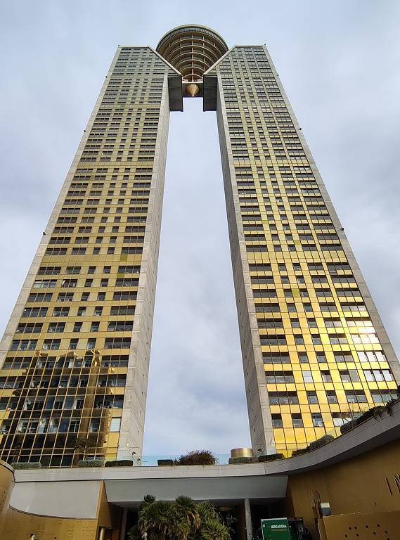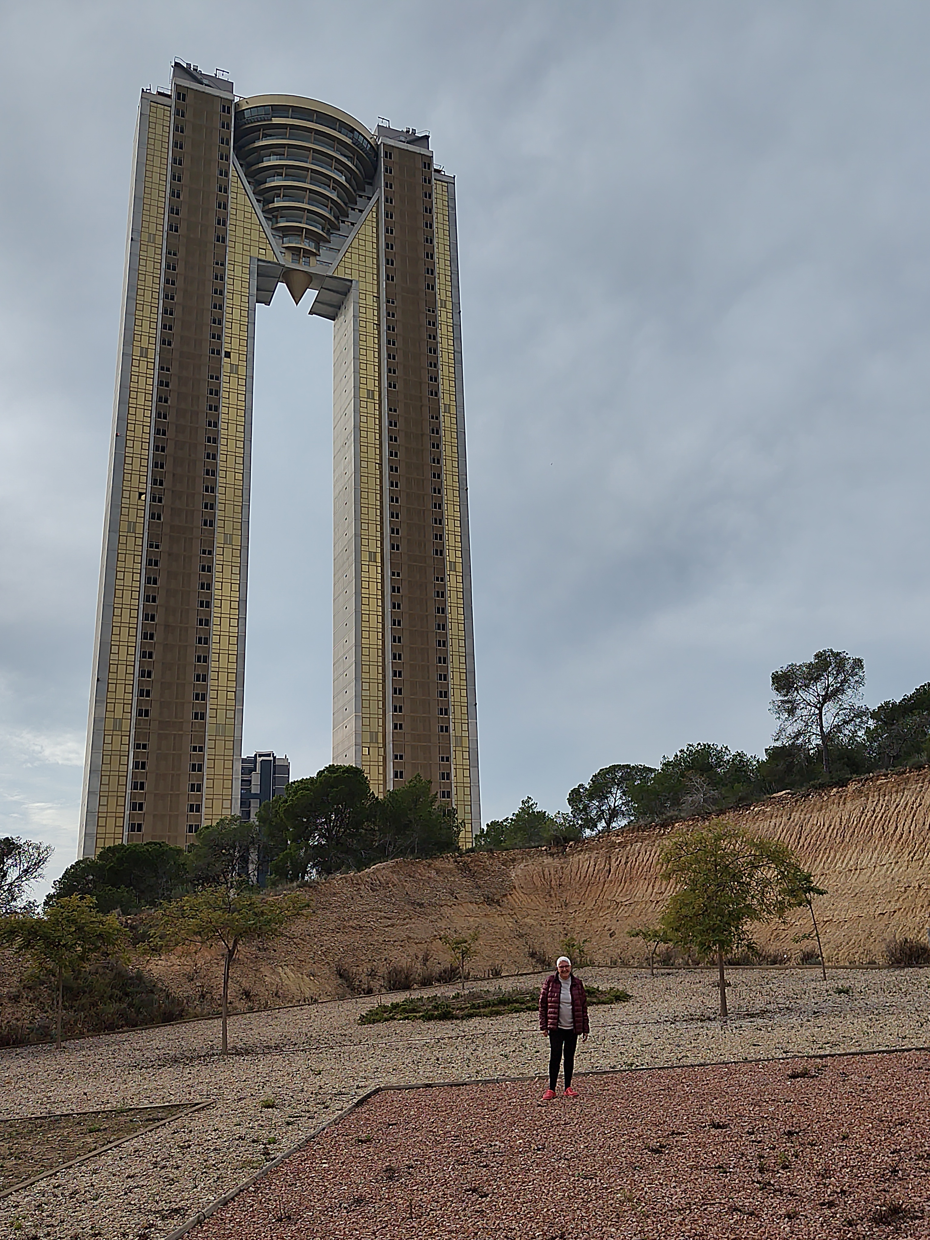 Heute steht zuerst nochmals Benidorm auf dem Programm. Wir wollen uns das verrückte Hochhaus «Intempo» ein wenig aus der Nähe ansehen. Um 11h sind wir bei dem Gebäude. Die Front glänzt wunderbar golden in der Sonne, die durch die Wolken kommt. Ein Wahnsinn dieses Hochhaus. Wir laufen rund um die Wohnburg und fahren nach 30 Minuten weiter. Übrigens: man könnte hier immer noch Wohnungen kaufen…!