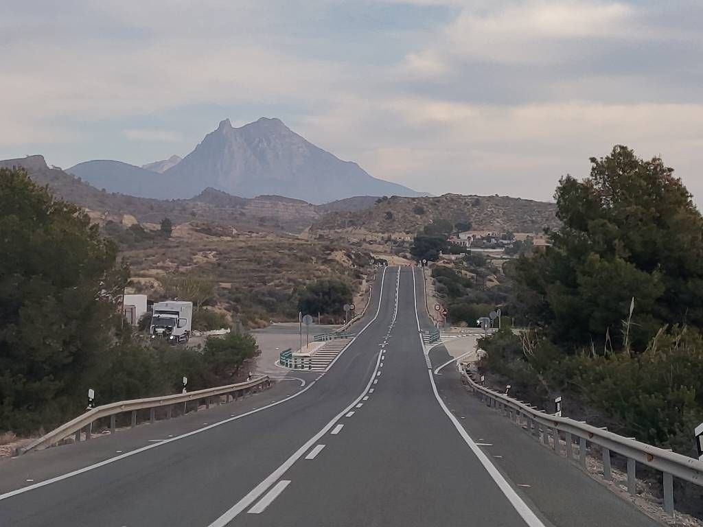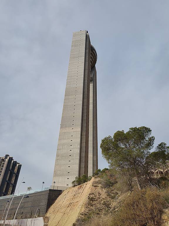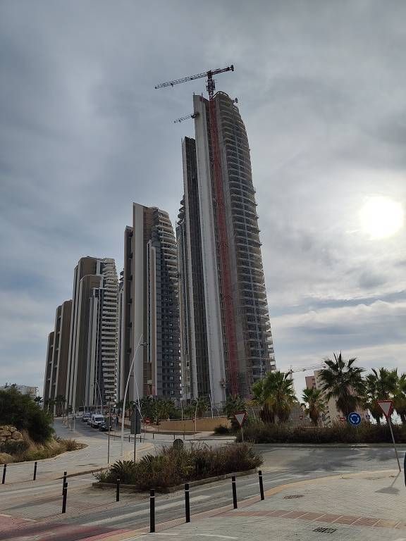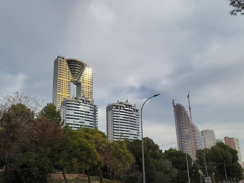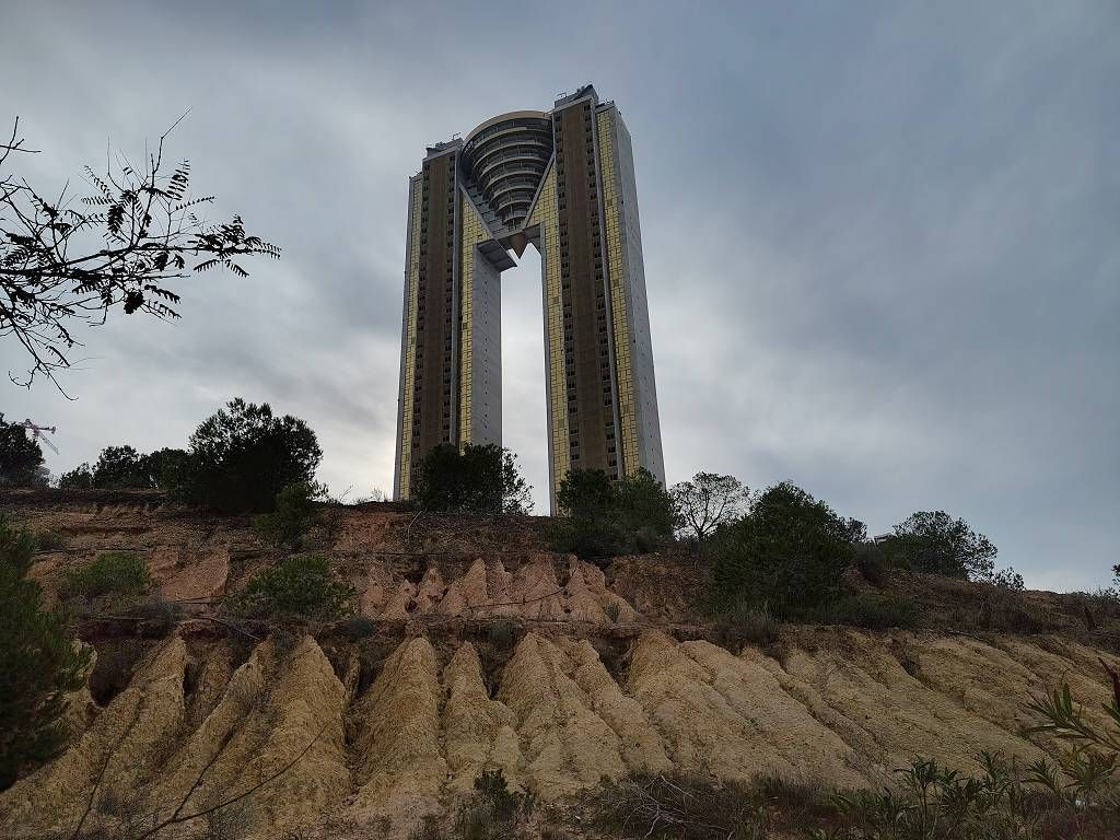 Heute steht zuerst nochmals Benidorm auf dem Programm. Wir wollen uns das verrückte Hochhaus «Intempo» ein wenig aus der Nähe ansehen. Um 11h sind wir bei dem Gebäude. Die Front glänzt wunderbar golden in der Sonne, die durch die Wolken kommt. Ein Wahnsinn dieses Hochhaus. Wir laufen rund um die Wohnburg und fahren nach 30 Minuten weiter. Übrigens: man könnte hier immer noch Wohnungen kaufen…!